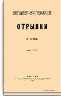 Сборник статей Погодина М.П. по русской истории, написанных им для разных журналов. Оглавление находится в конце издания.