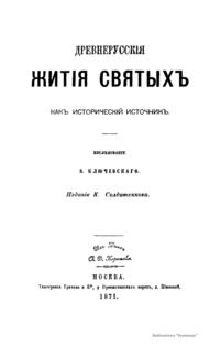Древнерусскiя житiя святыхъ какъ историческiй источникъ