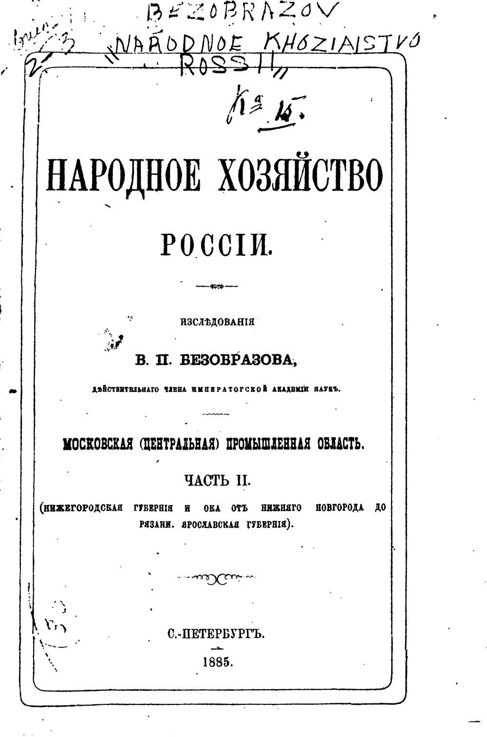 Народное хозяйство Россiи. Московская (центральная) промышленная область