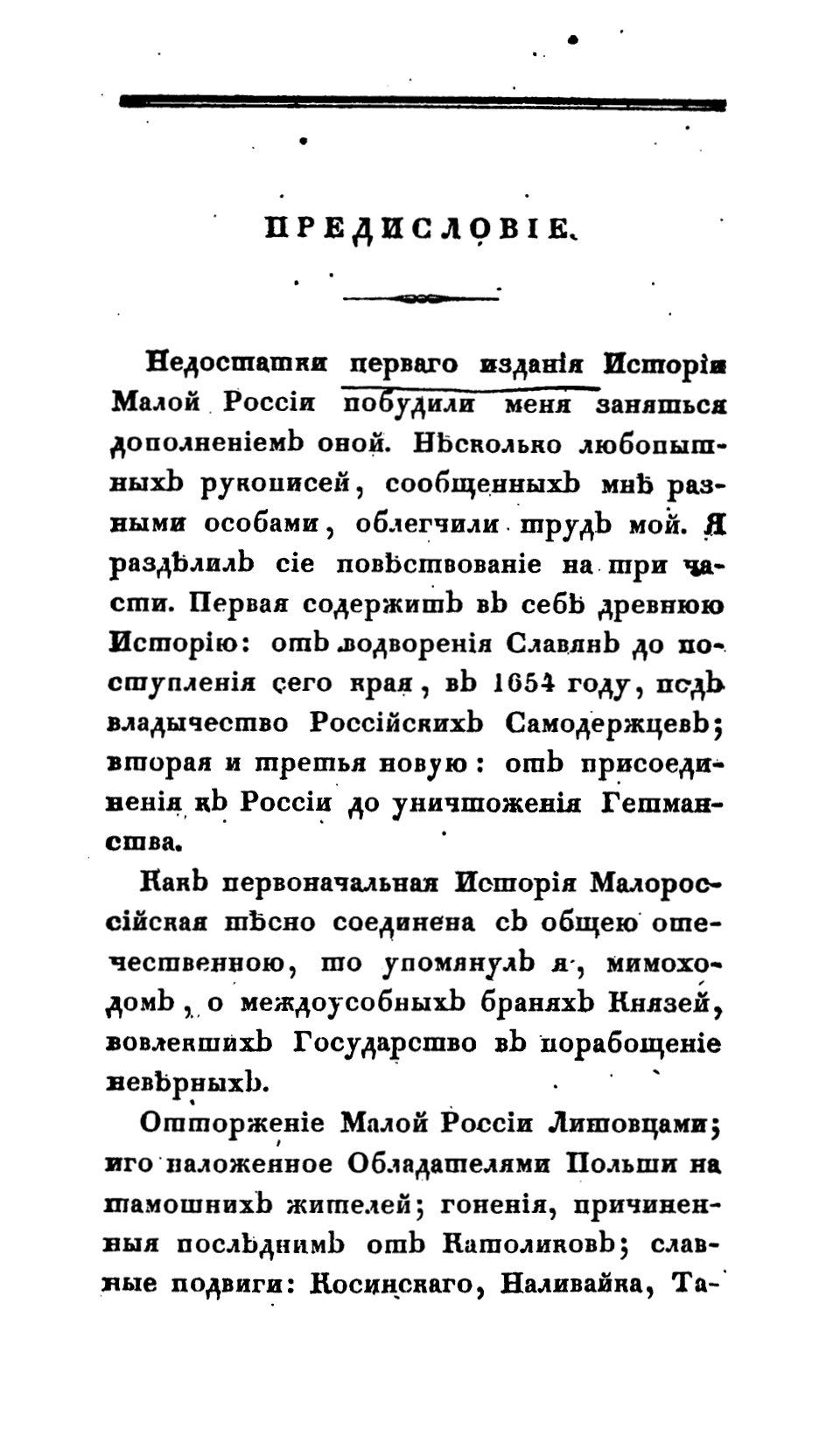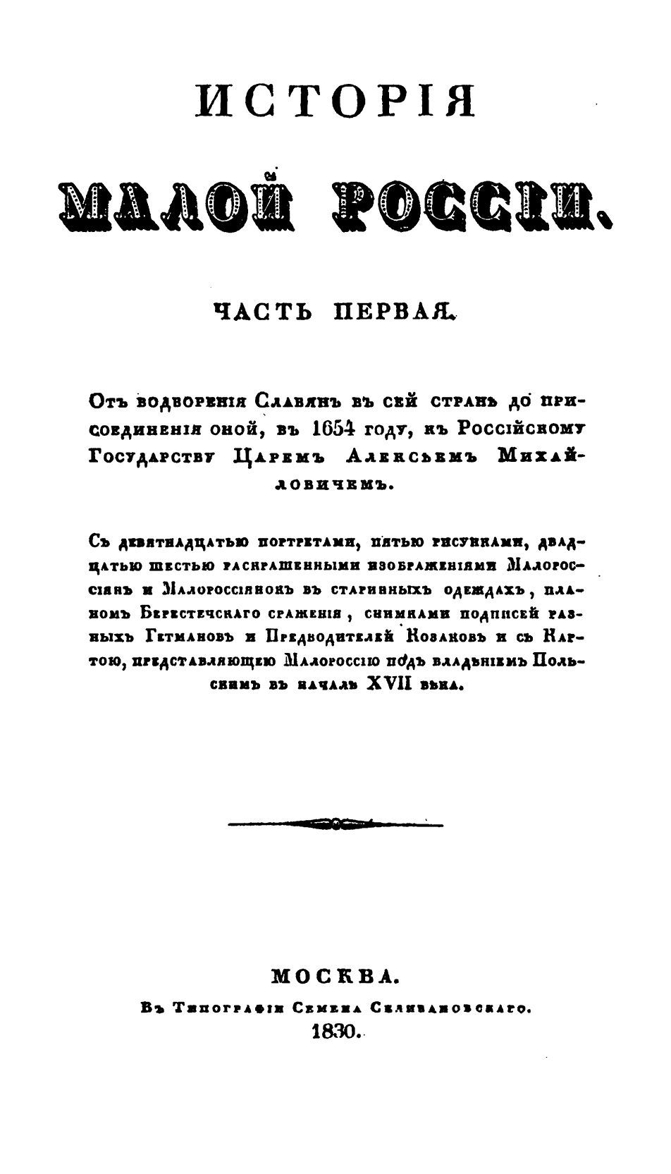 Часть Первая. От водворения славян в сей стран до присоединения оной, в 1654 году, к Российскому государству царем Алексеем Михайловичем