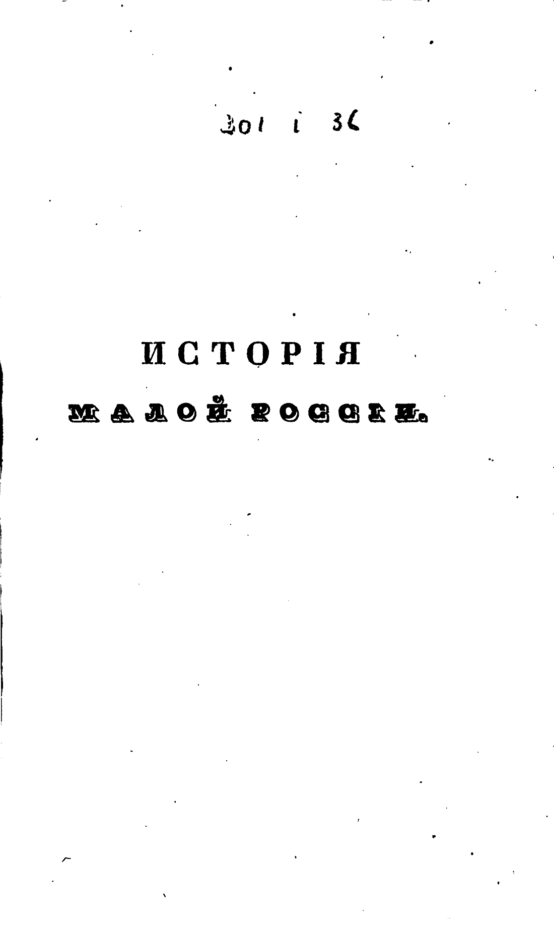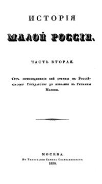 История Малой России от водворения Славян в сей стране до уничтожения Гетманства