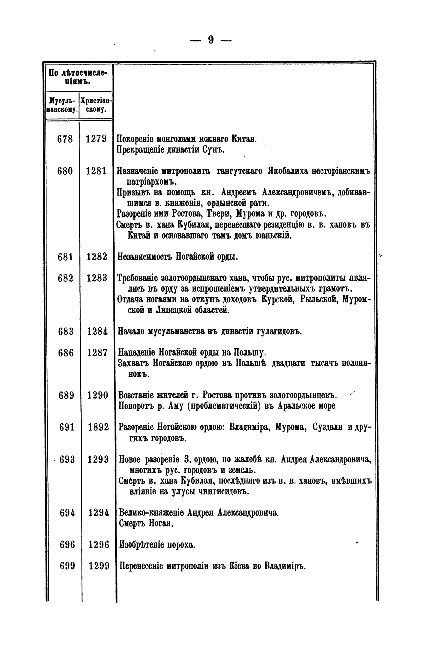 Хронологiя событiй в ходѣ борьбы Россiи с татаро-монголами