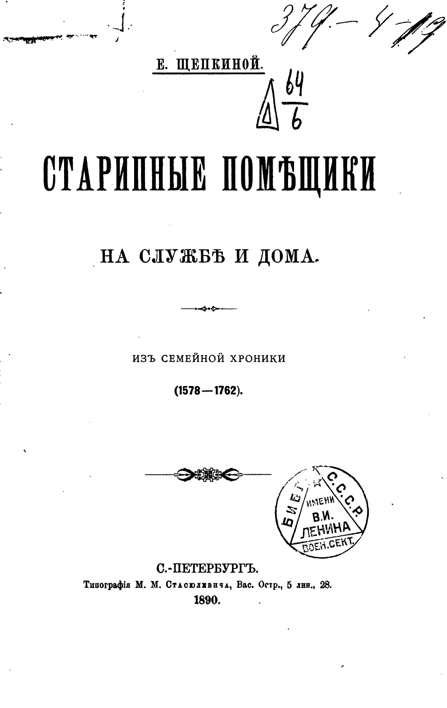 Старинные помещики на службе и дома. Из семейной хроники (1578-1762)