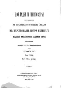 Доклады и приговоры состоявшiеся въ Правительствующемъ Сенатѣ въ царствованiе Петра Великаго