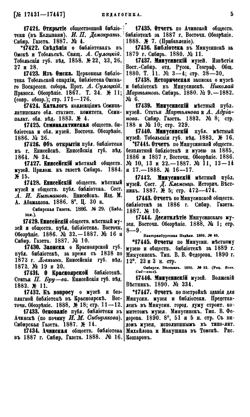 Сибирская библiографiя. Указатель книгъ и статей о Сибири на русскомъ языкѣ и однѣх только книгъ на иностранныхъ языкахъ за весь перiодъ книгопечатанiя