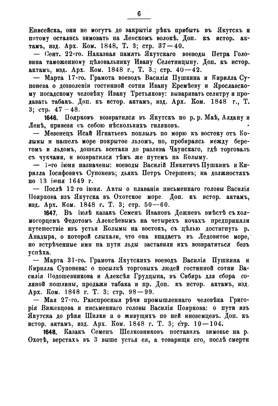 При составлении летописи автор по его собственному признанию не имел возможности «по местным условиям» пользоваться первоисточниками и поэтому использовал: Полное собрание законов Российской империи, Собрание узаконений и распоряжений Правительства, «Сибирскую библиографию» В.И. Межова, Памятные книжки Якутской области, Хронологический перечень важнейших данных из «Истории Сибири» И.В. Щеглова и отдельные статьи, найденные в современных ему изданиях