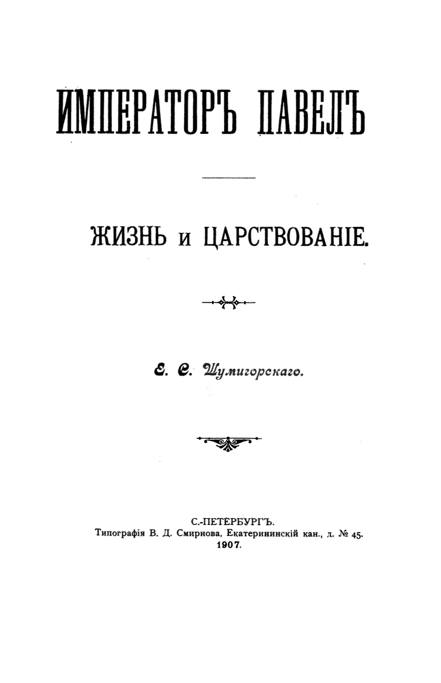 В этом сравнительно небольшом труде автор, по собственному признанию, делает попытку воссоздания истинного исторического образа России времен правления Павла, которое в современной Шумигорскому историографии рассматривалось «по преимуществу с анекдотической точки зрения».