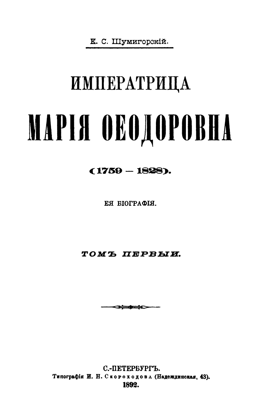 Императрица Мария Ѳедоровна (1759–1823). Ея бiографiя. Томъ первый