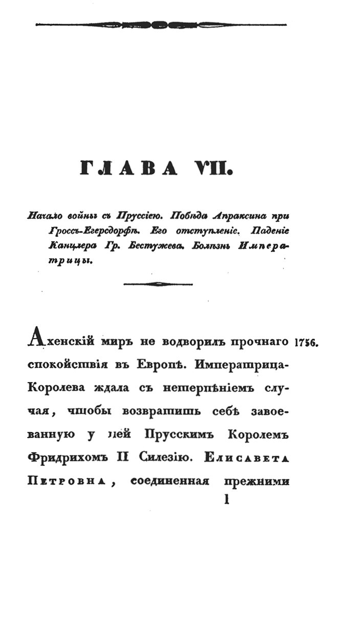 Предшествовавший воцарению Елизаветы дворцовый переворот 1741 г., описан в предыдущей работе автора - «Обзор главнейших происшествий в России с кончины Петра Великого до вступления на престол Елизаветы Петровны», СПб., 1836.