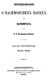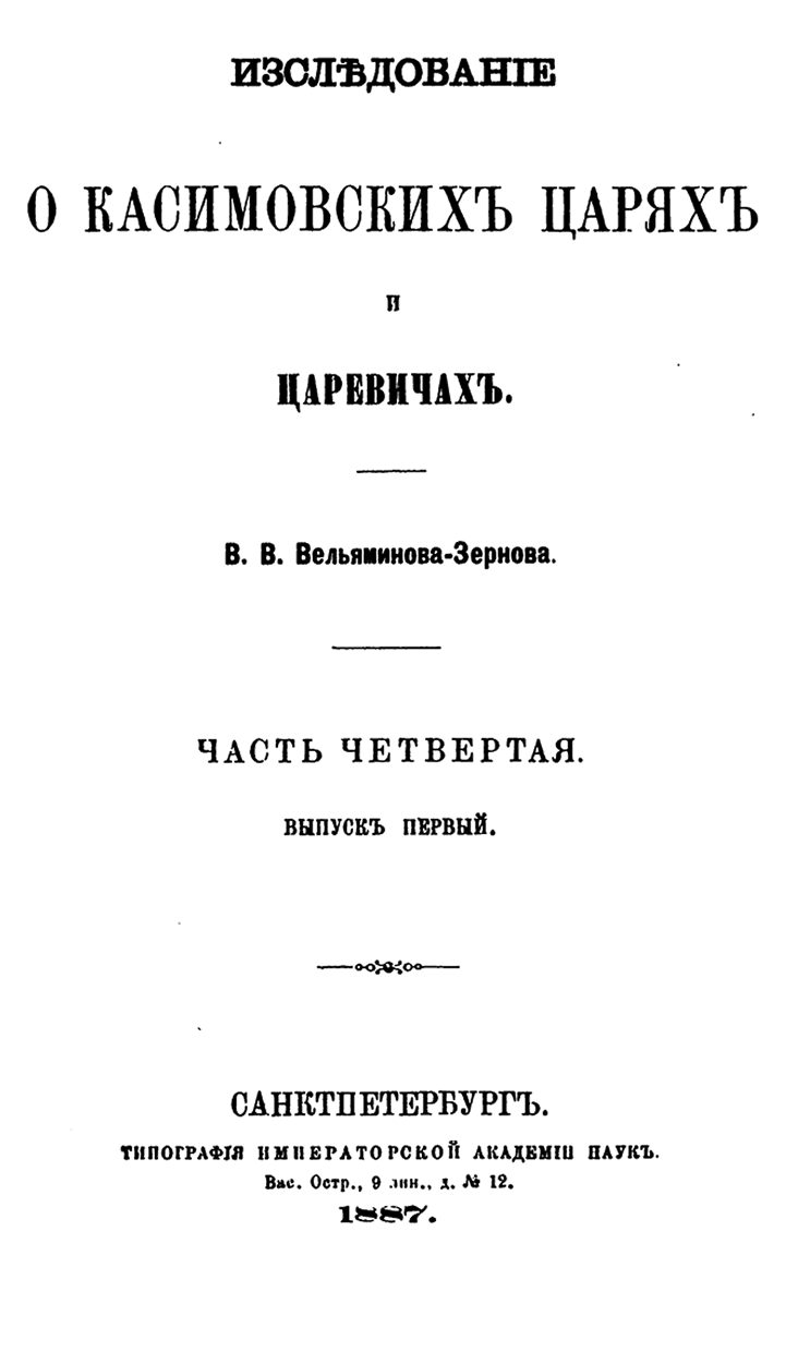 Исследование о касимовских царях и царевичах. Часть четвертая. Выпуск первый