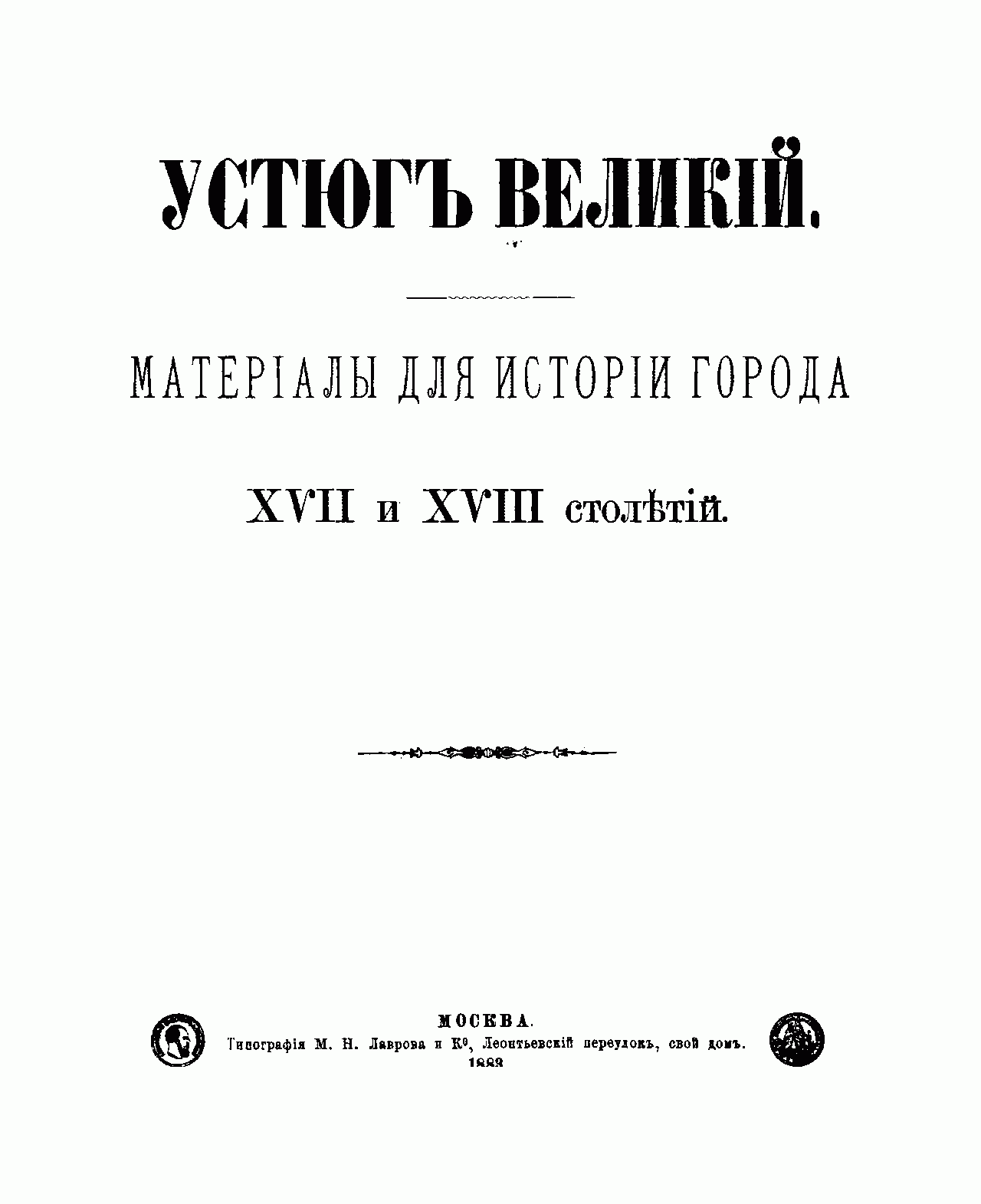Устюгъ Великiй. Матерiалы для исторiи города XVII и XVIII столѣтiй