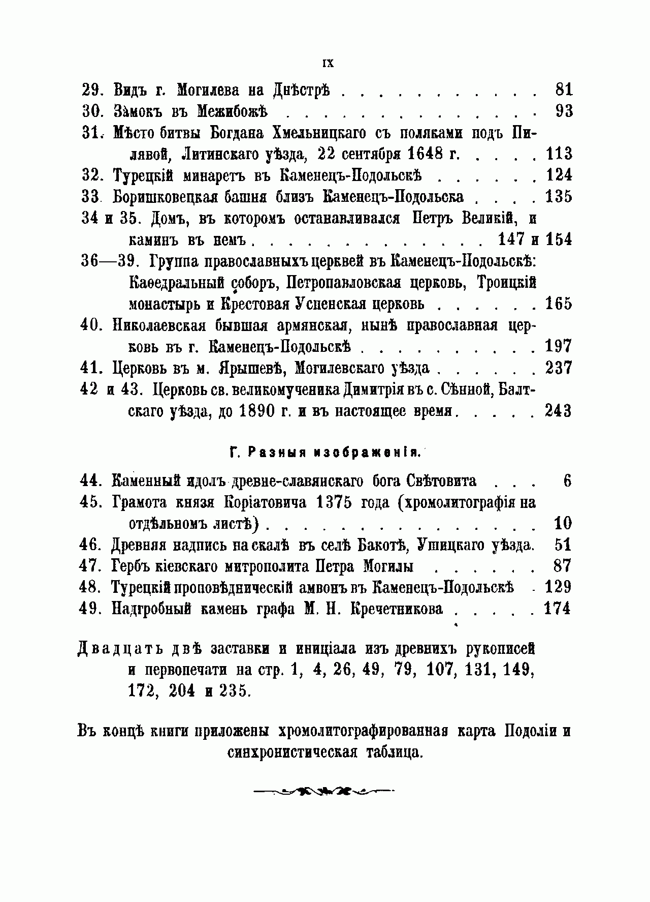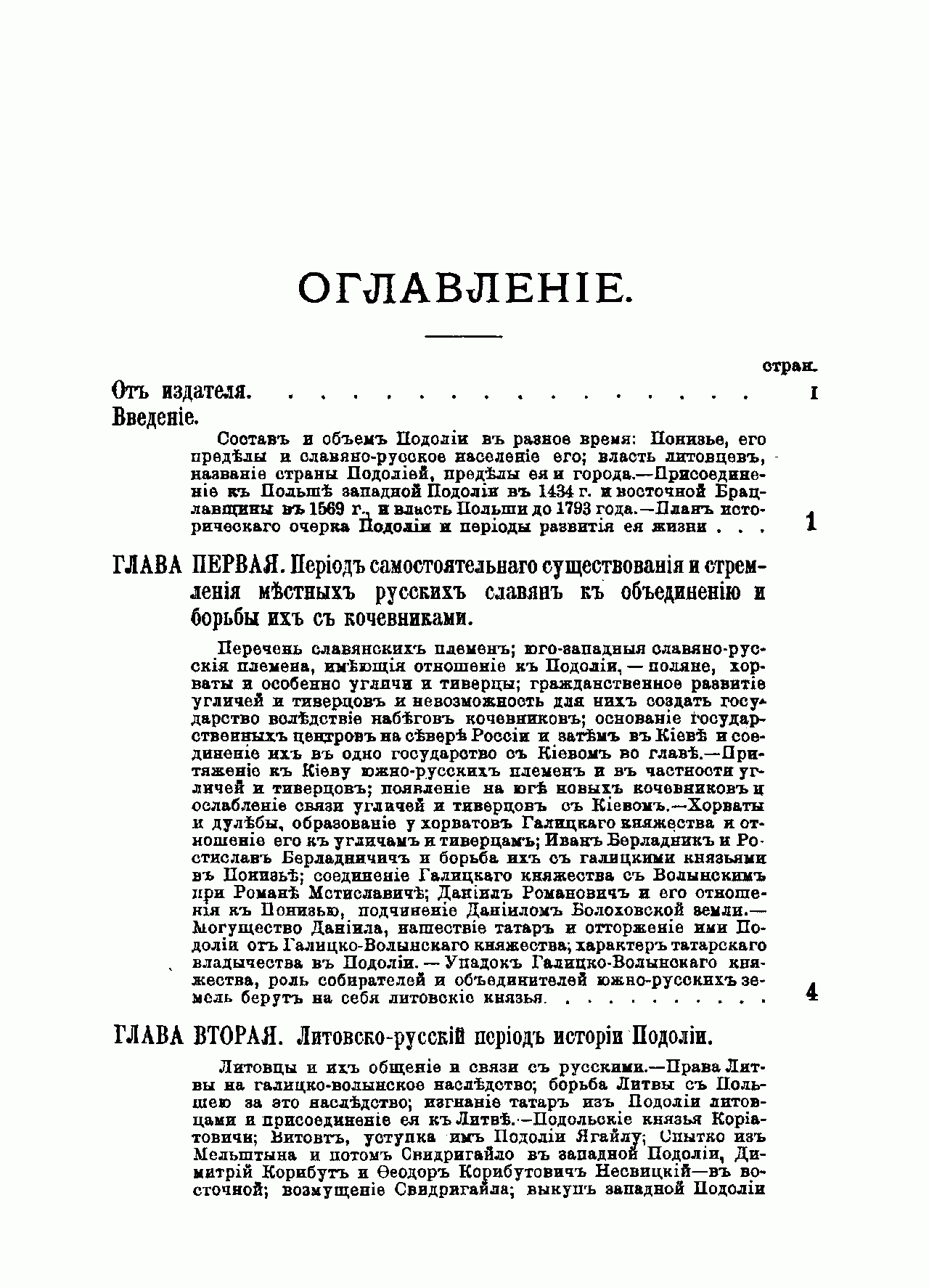 Книга о Подолии (историческая область в бассейне Южного Буга и левобережья Днестра на территории современной Украины) входит в серию «Памятники русской старины в западных губерниях». Издателем книги является П. Н. Батюшков. Автор исторического очерка о Подолии – профессор Киевской духовной академии Н. И. Петров. Автор статей, поясняющих помещённые в книге рисунки, – действительный статский советник М. И. Городецкий. Также в составлении книги приняли участие многие другие лица, указанные в главе «От издателя». Н. И. Петров рассматривает следующие периоды в истории Подолии: период самостоятельного существования и стремления местных русских славян к объединению и борьбы их с кочевниками; литовско-русский период процветания русской народности под властью Литвы и борьбы с наступающим на неё полонизмом со второй половины XIV века и до люблинской унии Литвы с Польшей в 1569 году; польско-русский период, или время стремления польских начал подавить русскую народность в крае; период восстановления русской народности в крае со времени воссоединения его с Россией в 1793 году.