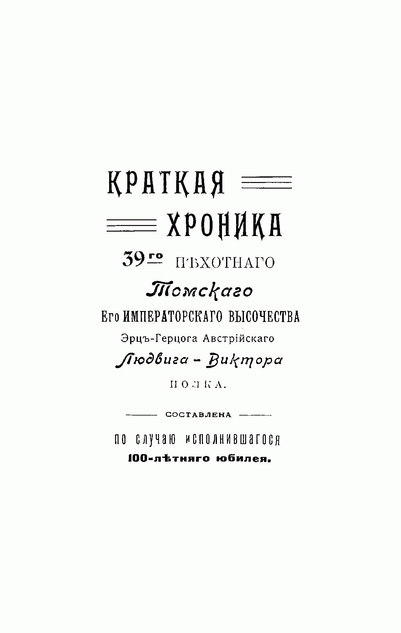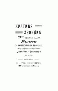 Краткая хроника 39-го пѣхотнаго Томскаго Его Императорскаго Высочества Эрцъ-Герцога Австрiйскаго Людвига-Виктора полка