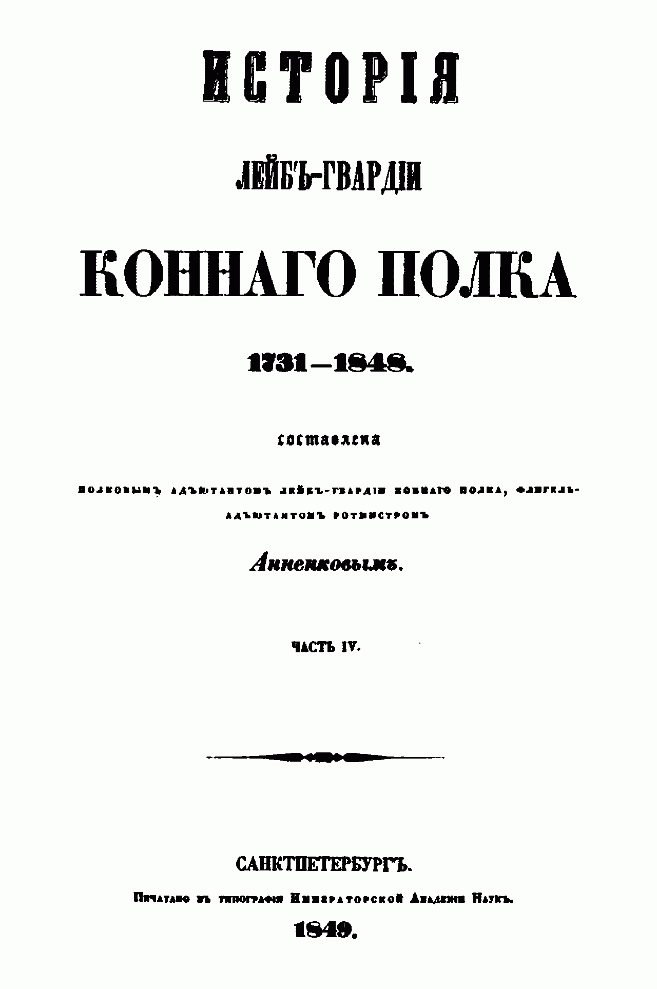 Исторiя Лейбъ-гвардiи Коннаго полка. 1731-1848. Часть IV