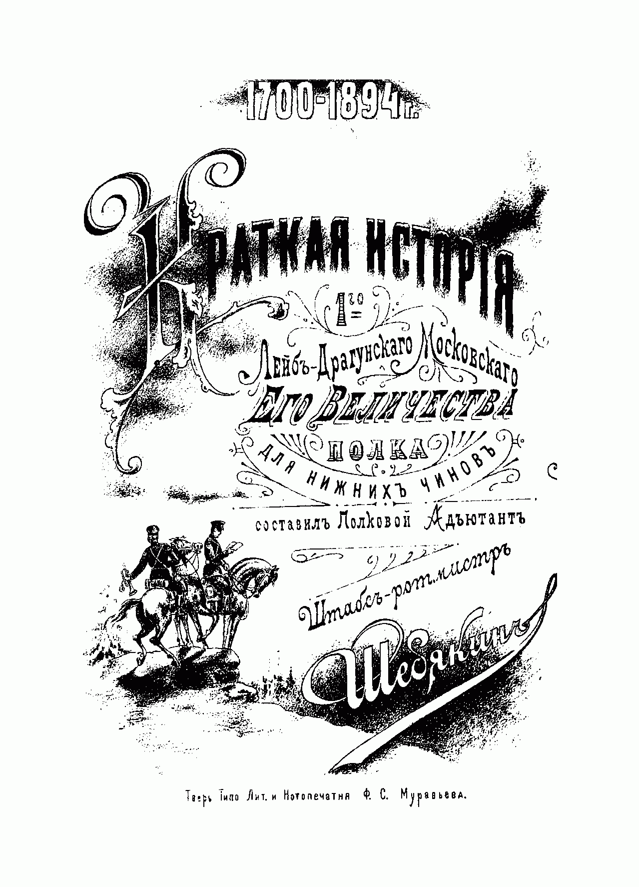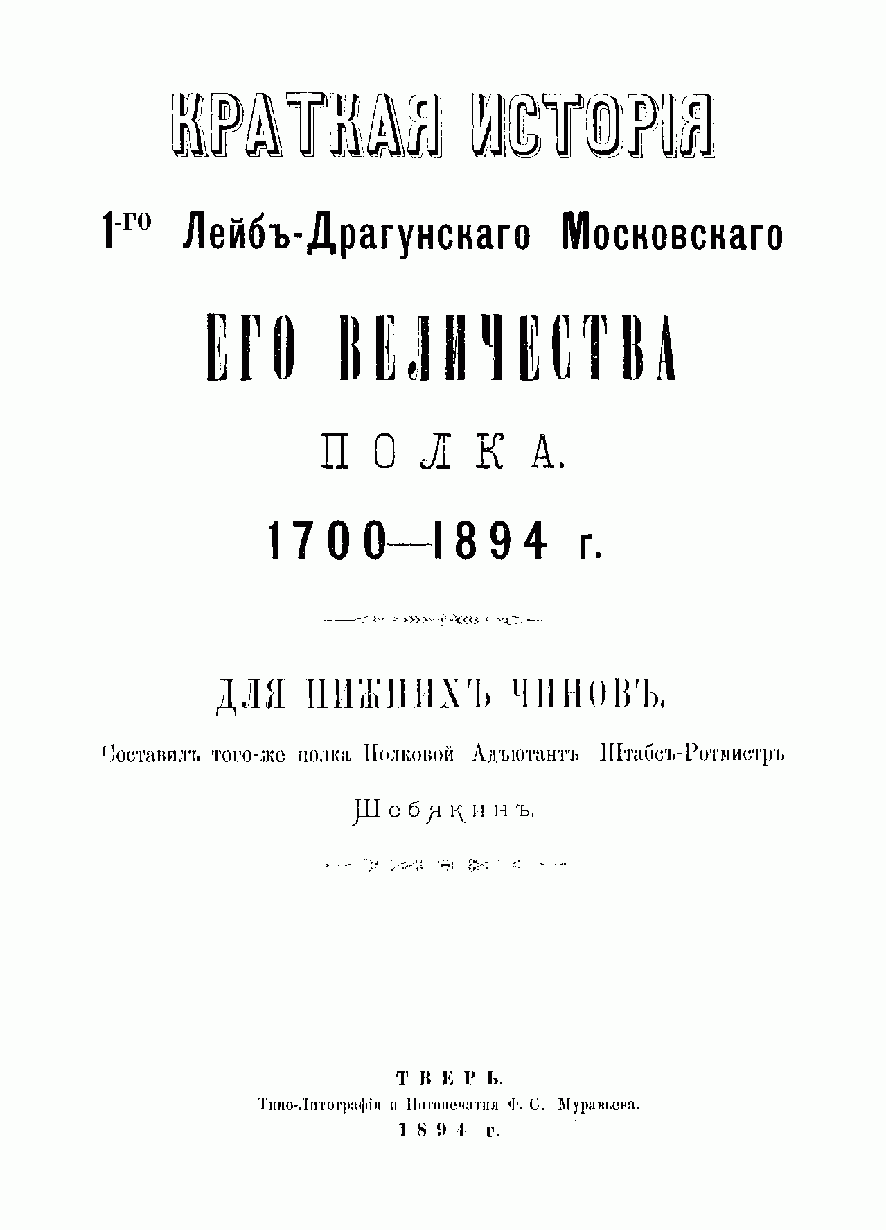 Краткая исторiя 1-го Лейбъ-Драгунскаго Московскаго Его Величества полка. 1700-1894 гг.