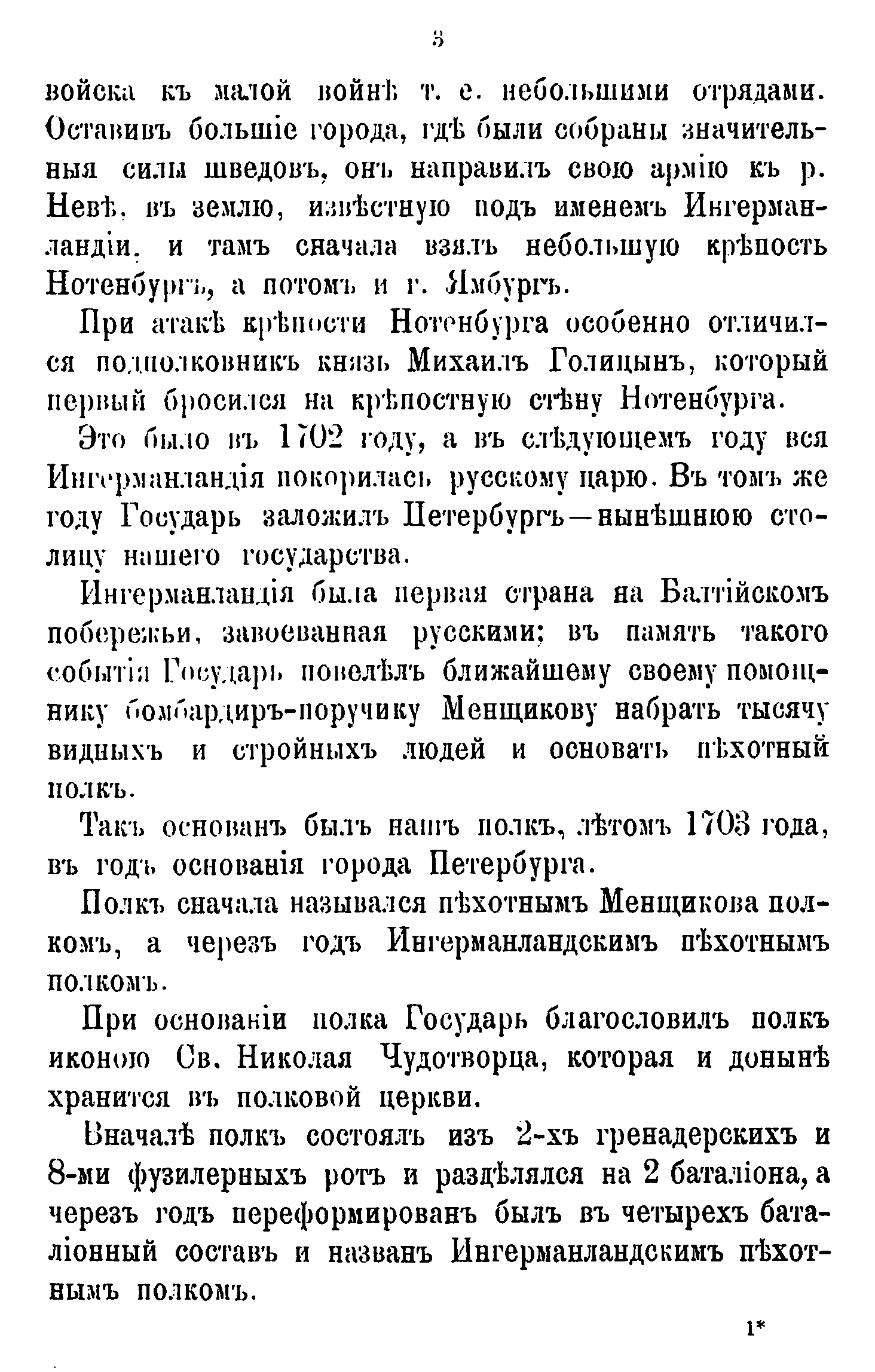 Краткая история 9-го пехотного Староингерманландского Генерала-Фельдмаршала Князя Михаила Голицина полка. Для нижних чинов 1703-1892 г