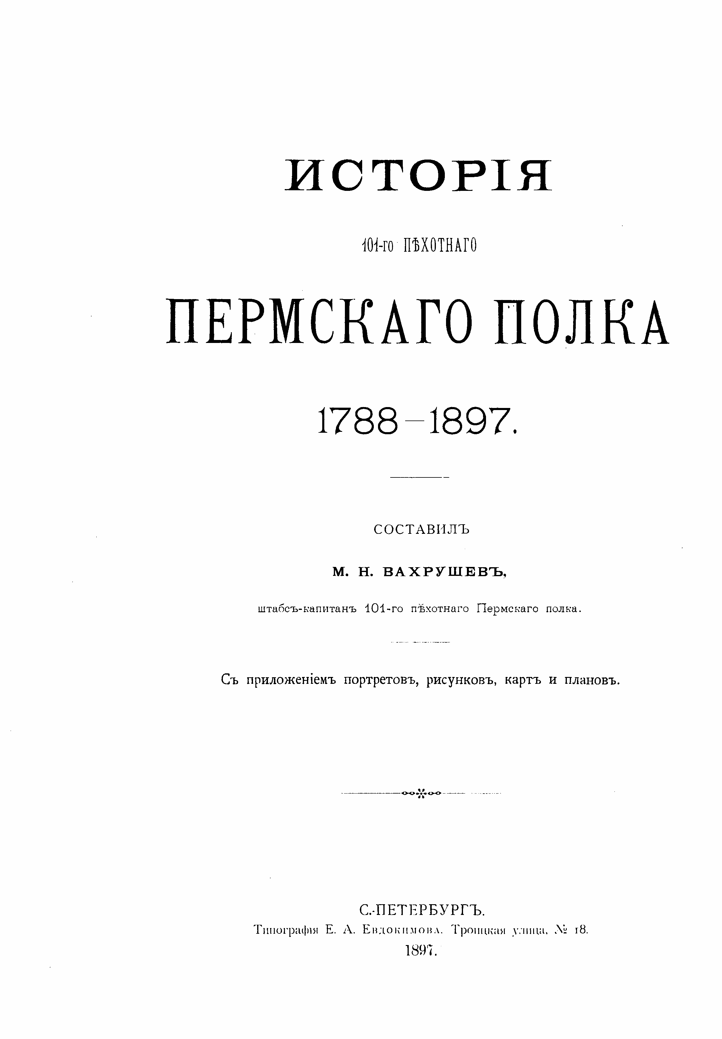 Исторiя 101-го пѣхотнаго Пермскаго полка 1788-1897
