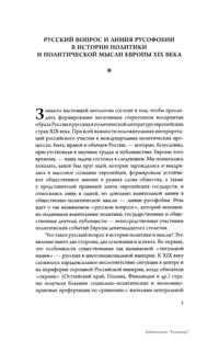 В антологии «Русский вопрос в истории политики и мысли» собраны работы английских, немецких, французских и польских политиков, литераторов и общественных деятелей XIX века. В книгу вошли литературные эссе, публичные выступления, политическая публицистика, научные статьи и фрагменты книг, а также антирусские карикатуры того времени, т. е. все, что формировало неприязненное отношение европейского общественного мнения к России и русским. Часть публикуемых текстов впервые переведена на русский язык. Издание снабжено комментариями. Для студентов гуманитарных факультетов университетов, а также всех, кто интересуется историей политики и социально-политической мысли.