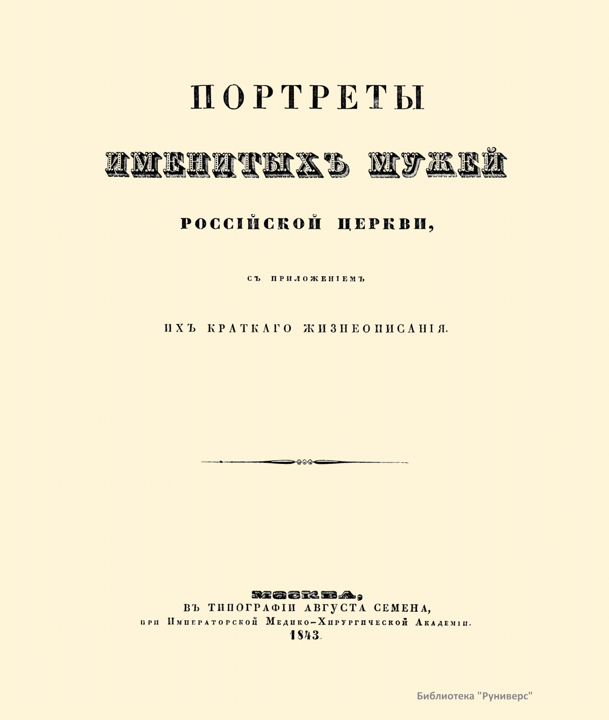 Портреты именитыхъ мужей россiйской церкви, съ приложенiемъ ихъ краткаго жизнеописанiя
