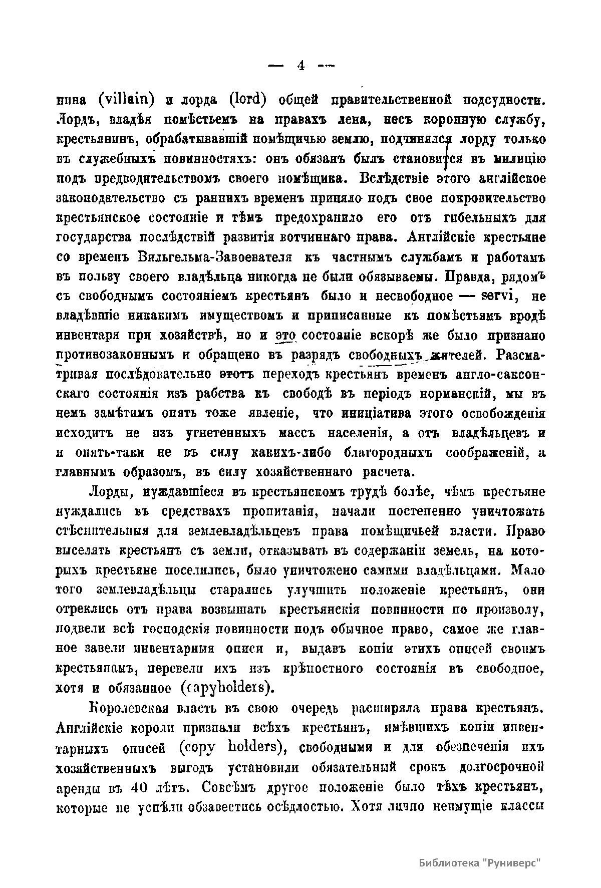 Исследование является сжатым конспектом тысячи томов законодательного и незаконодательного материала. В нем представлены результаты изучения хода развития самоуправления русских крестьян, а также исторический анализ законодательной деятельности и правительственной практики в отношении крестьянского самоуправления за границей и в России. Анализ ограничен двумя веками: восемнадцатым и девятнадцатым, так как именно в это время проявились две противоположные государственные системы в отношении крестьянского самоуправления. В восемнадцатом веке, в отличие от девятнадцатого, отсутствует система правительственного надзора над самоуправлением крестьян.