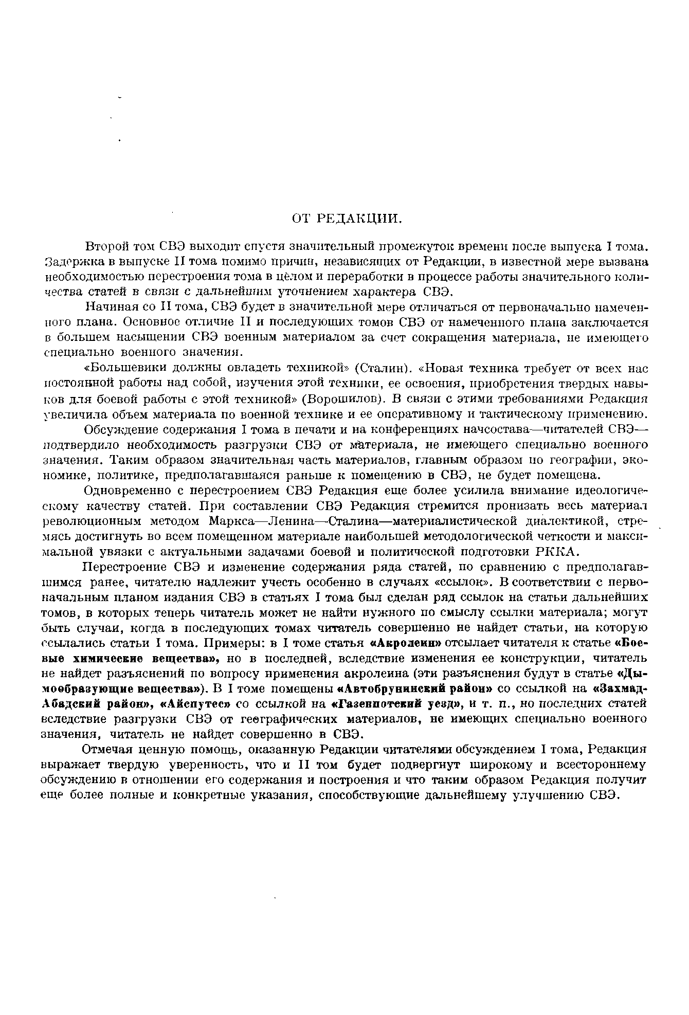 В начале 1930-х гг. в Наркомате обороны СССР была развернута подготовка к изданию многотомной «Советской военной энциклопедии» под редакцией председателя Центрального совета Осоавиахима комкора Р. П. Эйдемана. Однако, в 1932-1933 гг. вышли в свет только 2 тома (до статьи «Варта» включительно). Работа по подготовке следующих томов была остановлена в связи с развернутыми в РККА репрессиями командных кадров (разоблачение «заговора в Красной Армии»). Советская военная энциклопедия представляла собой систематизированный свод военных знаний и справочное издание, дающее научное толкование военных понятий и терминов. Статьи, помещенные в Энциклопедии, по своему характеру делились на военно-теоретические, военно-исторические, военно- технические, военно-географические и биографические. В Энциклопедии были помещены иллюстрации, дополняющие содержание статей, военно-исторические, географические и другие карты, схемы, рисунки, фотографии, репродукции.Статьи размещены в алфавитном порядке. Главные темы: - военное строительство (общие вопросы; виды вооруженных сил, рода войск и воинские формирования; организация и персоналии); - военная техника и вооружение (оружие, военное образование и специальности, должности и звания, воинские награды, форма одежды и т. д.); - военное искусство (теория и практика; виды военных (боевых) действий, их обеспечение; управление войсками и боевыми средствами; боевая и оперативная подготовка войск); - военная история (войны, походы, сражения, битвы, операции, вооружённые восстания и революции — от Древнего мира до Новейшего времени); - военная география (географические объекты, государства и территории, общенаучные понятия).