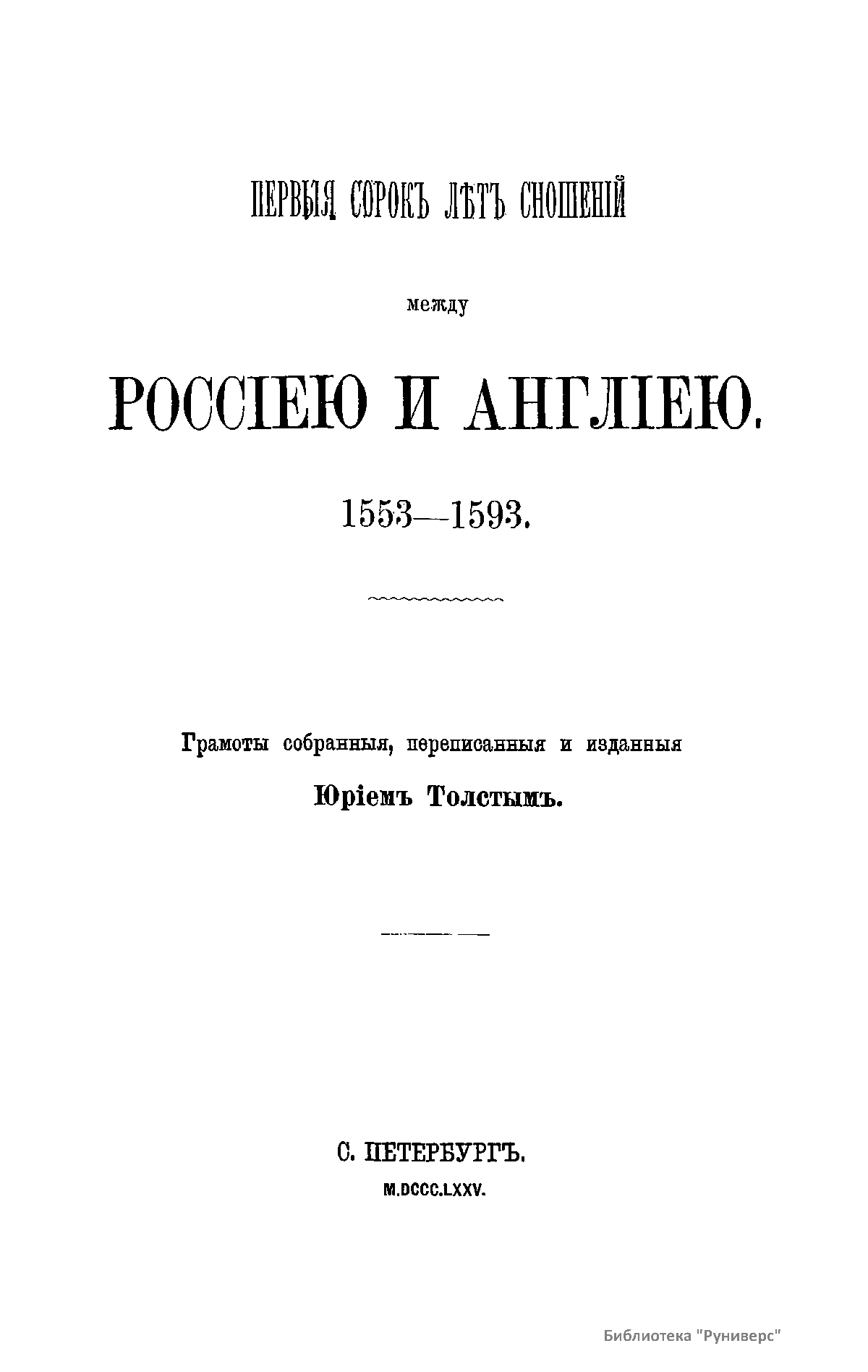 Первыя сорокъ лѣтъ сношенiй между Россiею и Англiею. 1553-1593