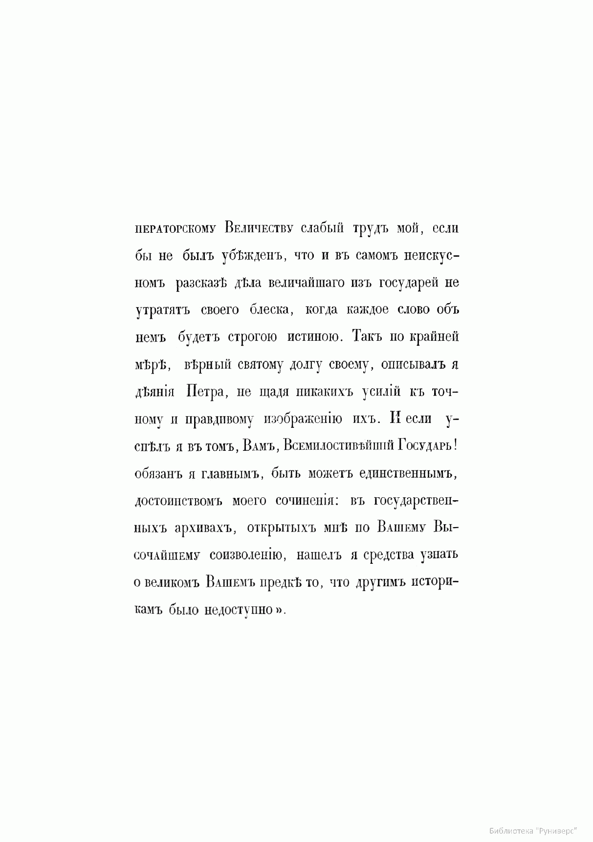 Устрялов Николай Герасимович (1805–1870) — профессор Петербургского университета, академик Императорской Академии наук. Самым важным трудом, которому Устрялов посвятил последние 23 года жизни, была «История царствования Петра Великого». Для ее создания автор использовал множество важных источников из государственного архива. Его труд остался незаконченным, но, несмотря на это, явился крупнейшим историческим исследованием.