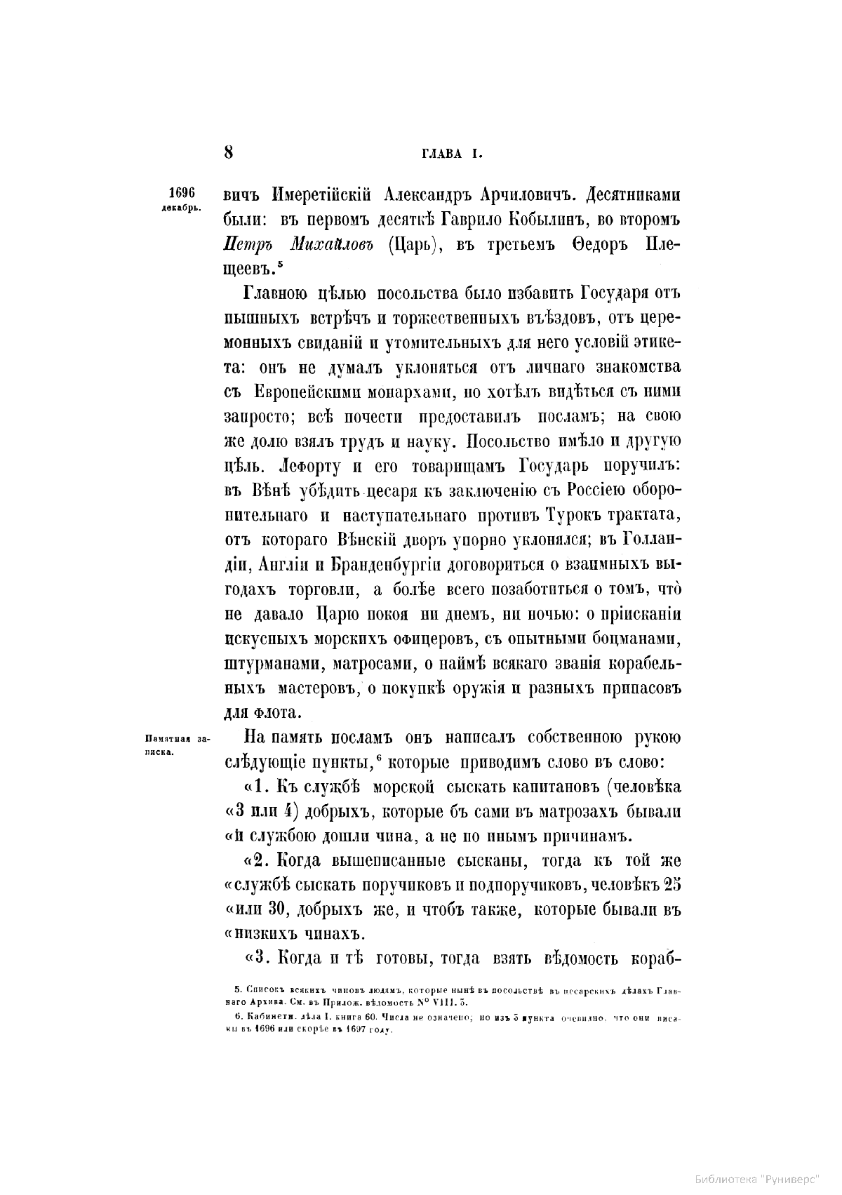 Вторая часть четвертого тома «Истории...» — «Приложения» — содержит более 770 списков с подлинных актов из Государственного архива Санкт-Петербурга, Главного архива Москвы, Тайного государственного архива Вены, архивов Правительствующего Сената, Морского министерства, Императорской Академии наук.