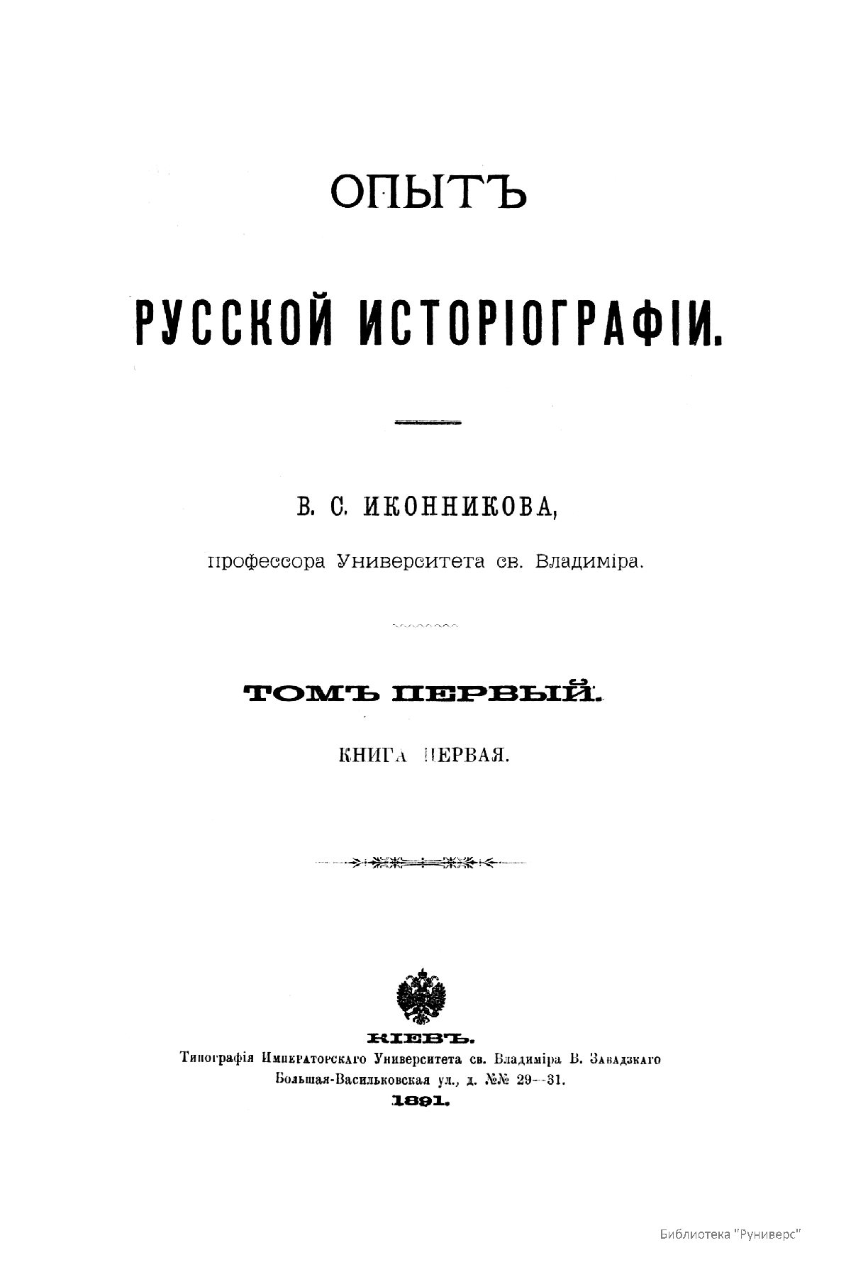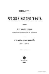 Иконников Владимир Степанович (1841–1923) — историк, академик Петербургской академии наук (1914). Самый капитальный труд В. С. Иконникова — его широко задуманный «Опыт русской историографии» — библиографическое пособие, целая энциклопедия историковедения и библиографии русской истории. Настоящее издание содержит фактический материал по истории летописания.