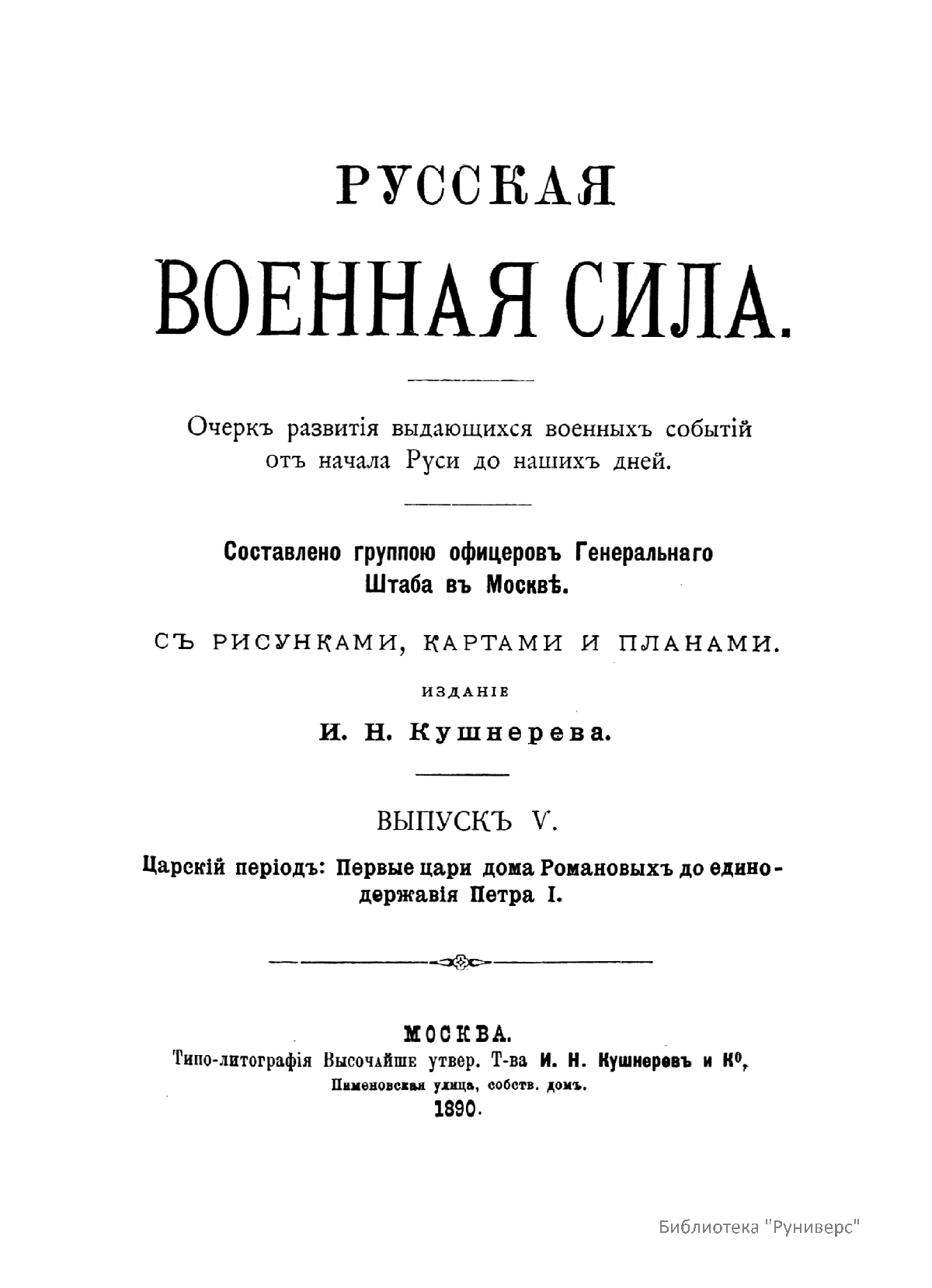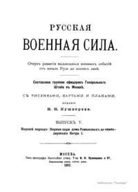 «Русская военная сила» (Очерк развития выдающихся военных событий от начала Руси до наших дней), составленная обществом офицеров Генерального штаба в Москве, начала публиковаться с 1888 г. «Русская военная сила» по праву считалась одним из лучших сводных общедоступных исследований по российской военной истории.