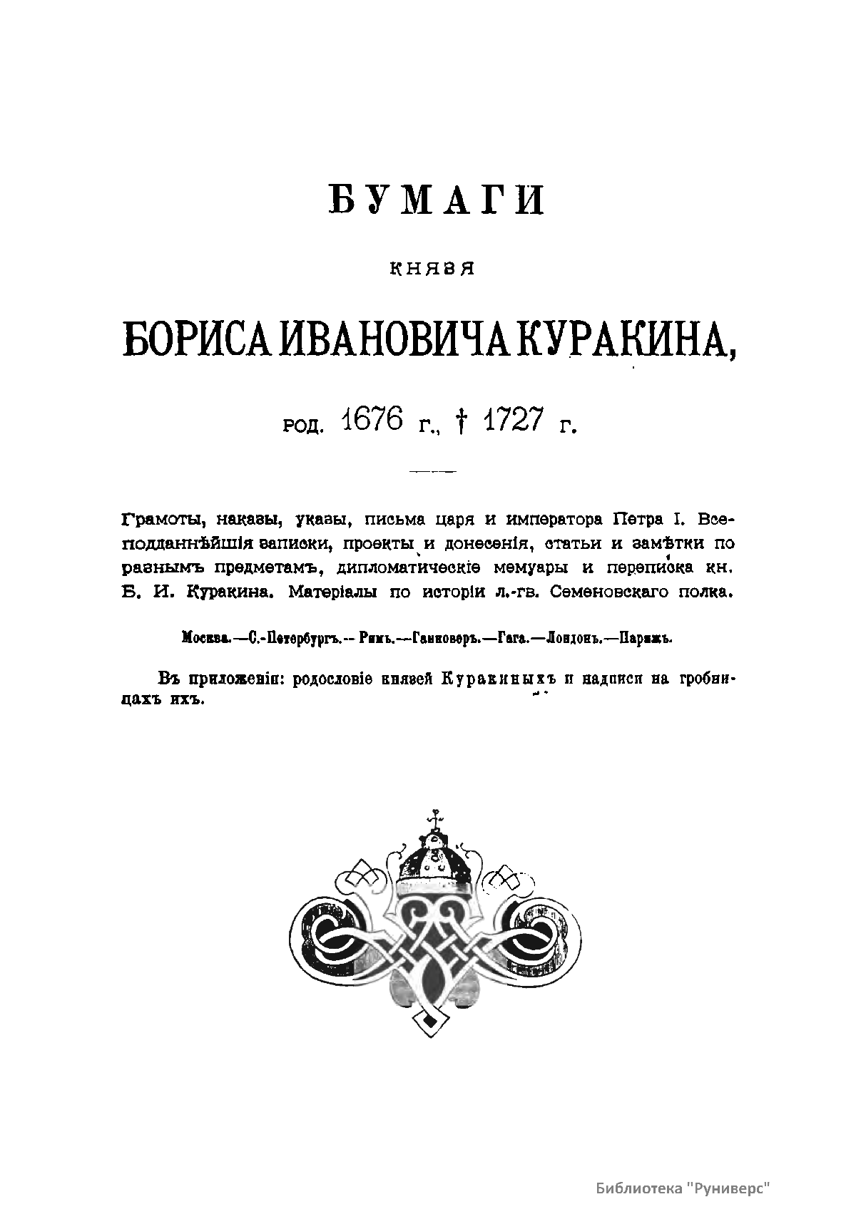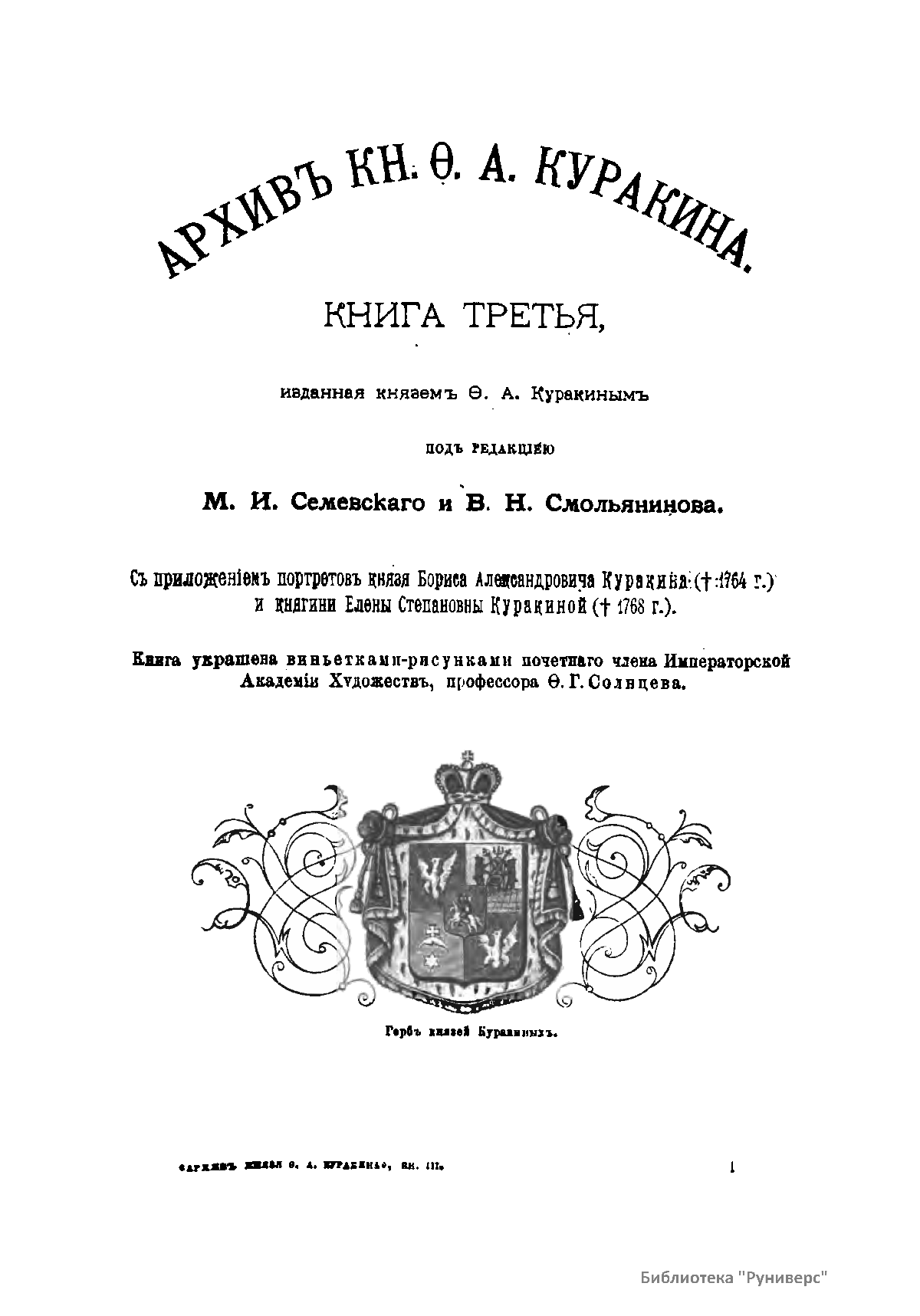 Архивъ князя Ѳ.А. Куракина. Книга третья