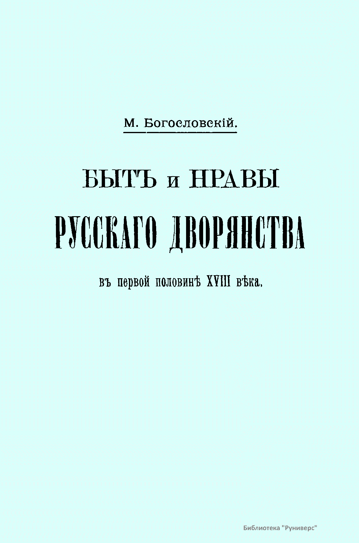 Бытъ и нравы русскаго дворянства въ первой половинѣ XVIII вѣка