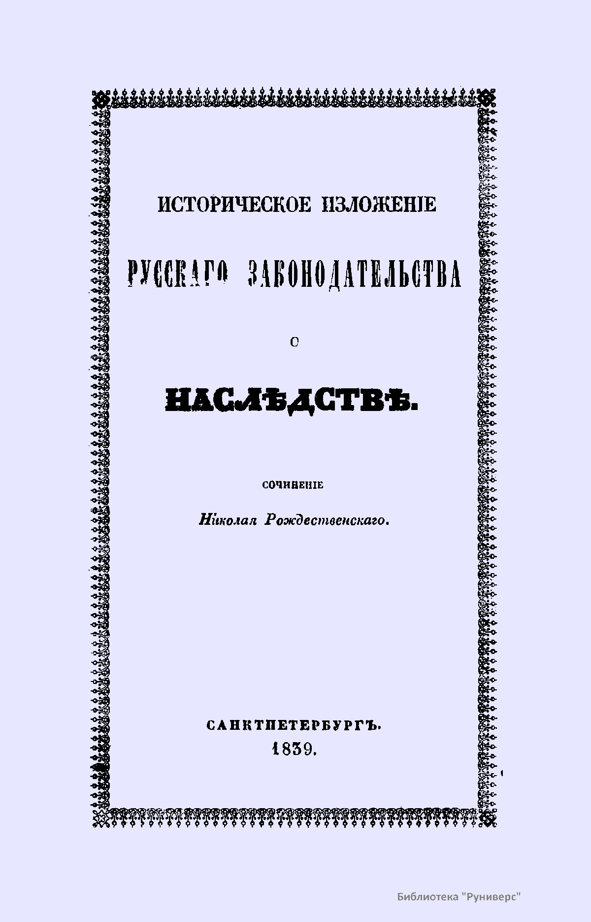 Историческое изложенiе русскаго законодательства о наслѣдствѣ