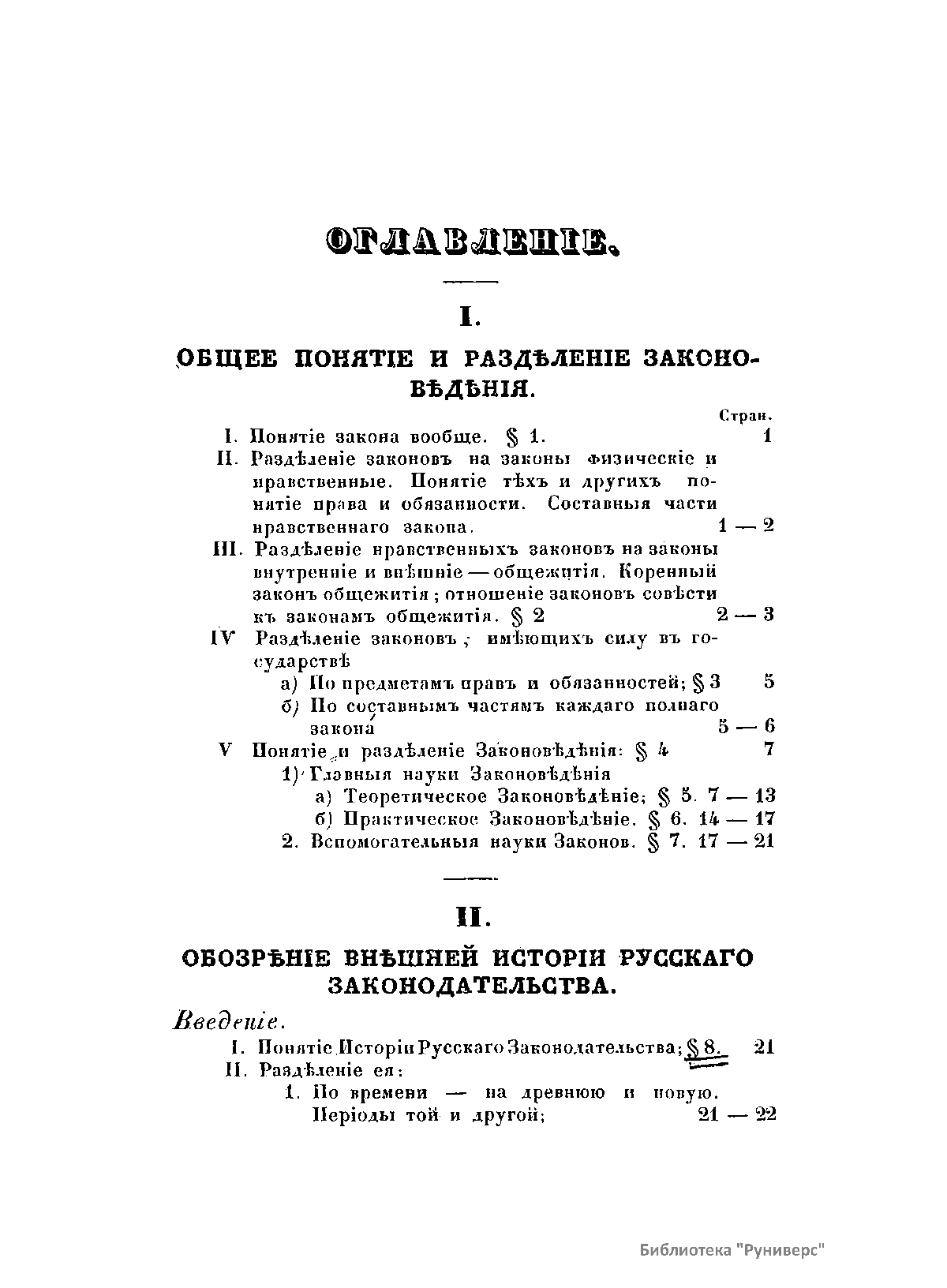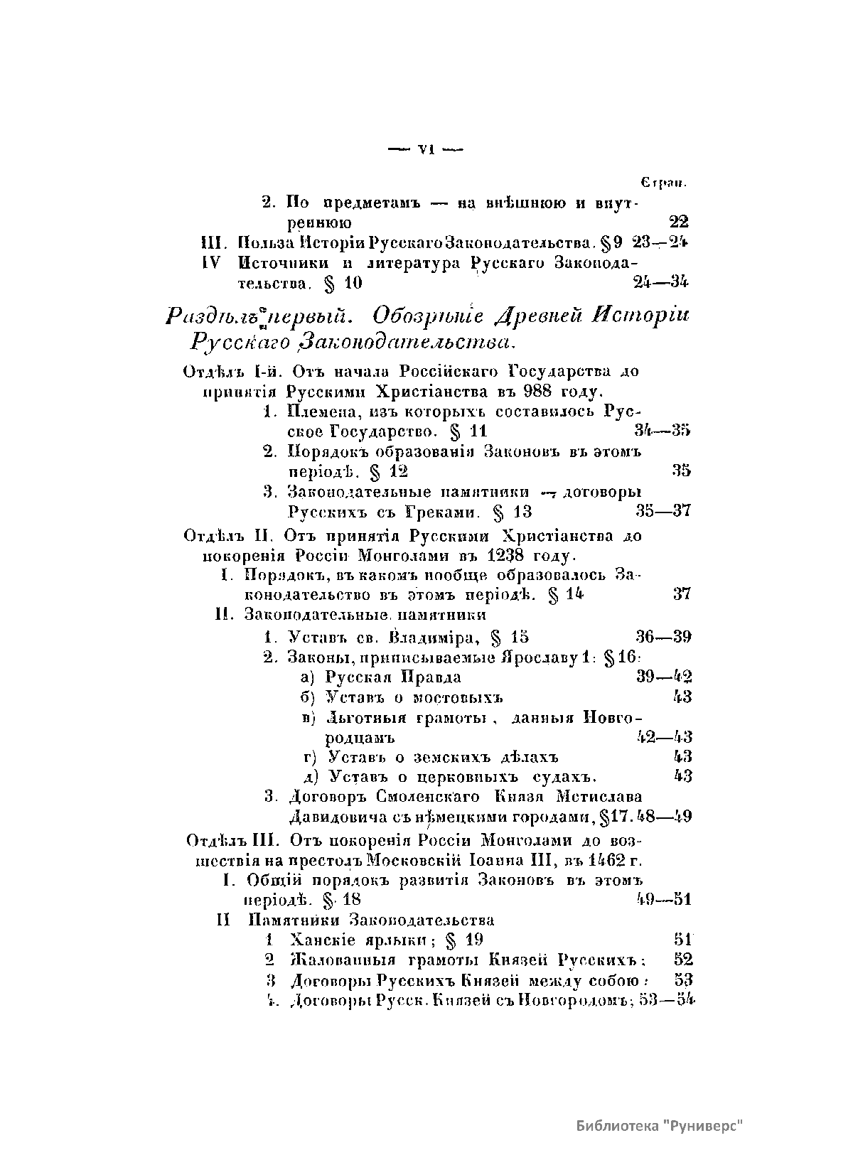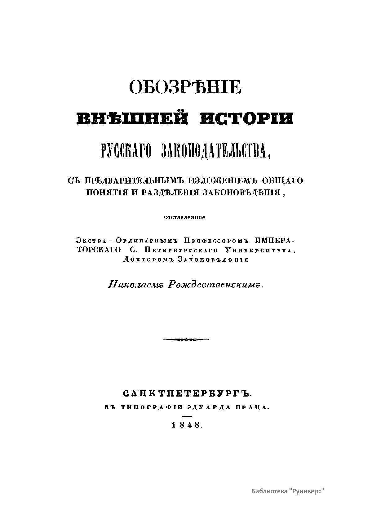 Обозрѣнiе внѣшней исторiи русскаго законодательства, съ предварительнымъ изложенiемъ общаго понятiя и раздѣленiя законовѣдѣнiя