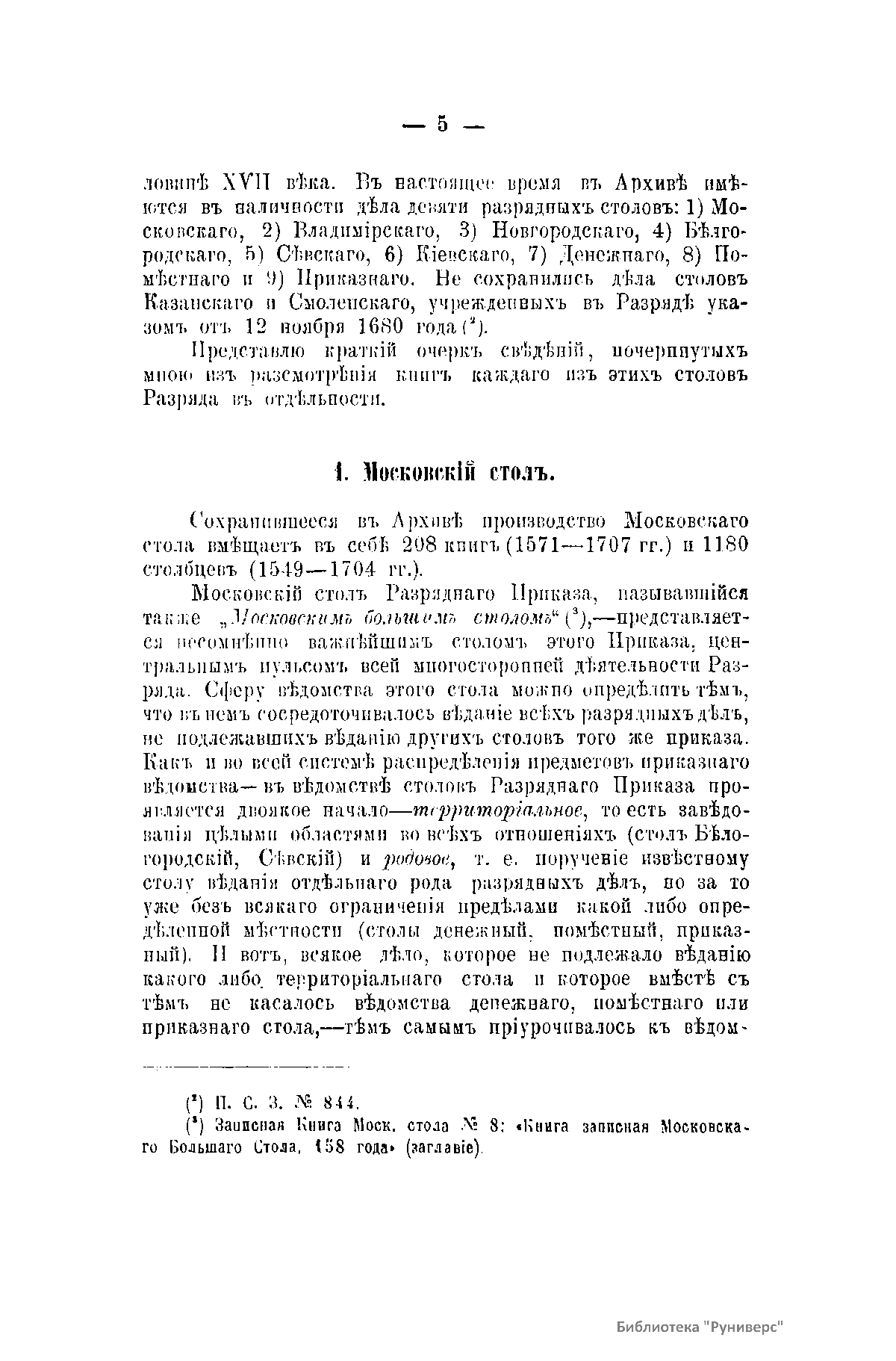 Столы разрядного приказа, по хранящимся в московском архиве министерства юстиции книгам их. Отчет о занятиях в Архиве осенью 1878 года