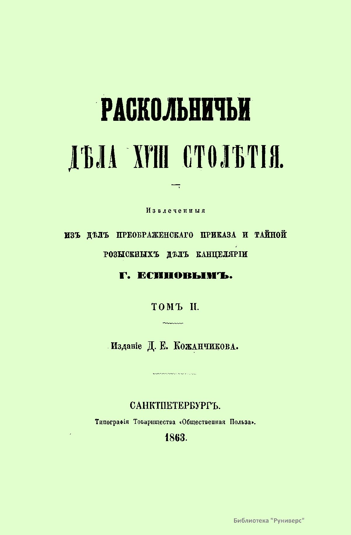 Раскольничьи дела XVIII столетия. Том II