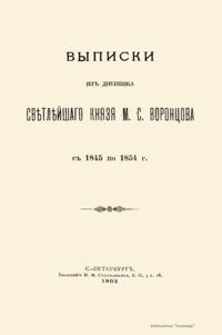 Выписки изъ дневника свѣтлѣйшаго князя М.С. Воронцова съ 1845 по 1854 г.