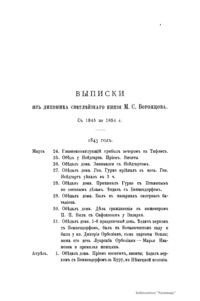 Выписки из дневника светлейшего князя М.С. Воронцова с 1845 по 1854 г.