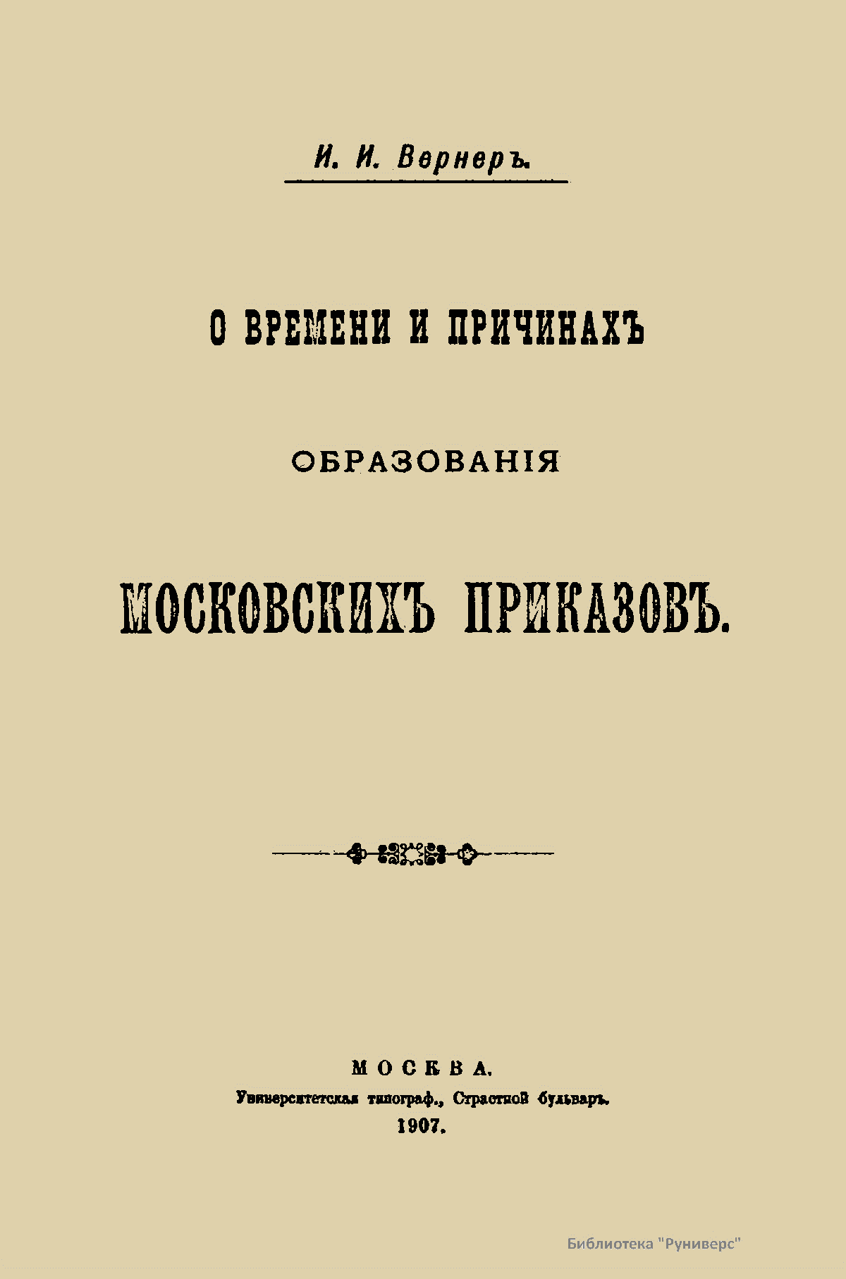О времени и причинахъ образованiя московскихъ приказовъ