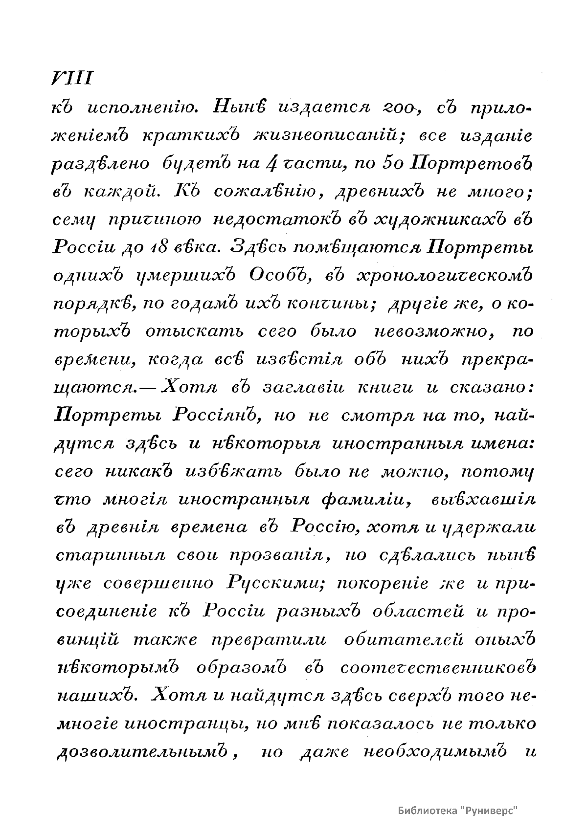 Собранiе портретовъ россiянъ, знаменитыхъ по своимъ дѣяниямъ воинскимъ и гражданскимъ, по учености, сочиненiямъ, дарованiямъ, или коихъ имена по чему другому сдѣлались извѣстными свѣту, въ хронологическомъ порядкѣ, по годамъ кончины, съ приложенiемъ ихъ краткихъ жизнеописанiй