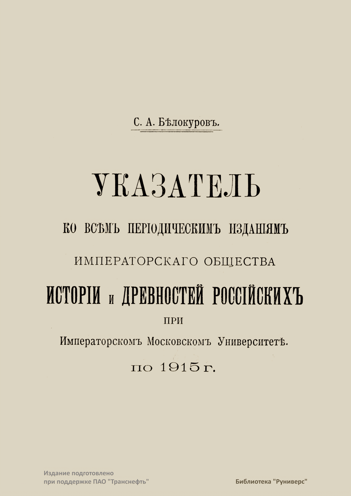 Указатель ко всѣмъ перiодическимъ изданiямъ Императорскаго общества исторiи и древностей россiйскихъ при Императорскомъ Московскомъ Университетѣ по 1915 г.
