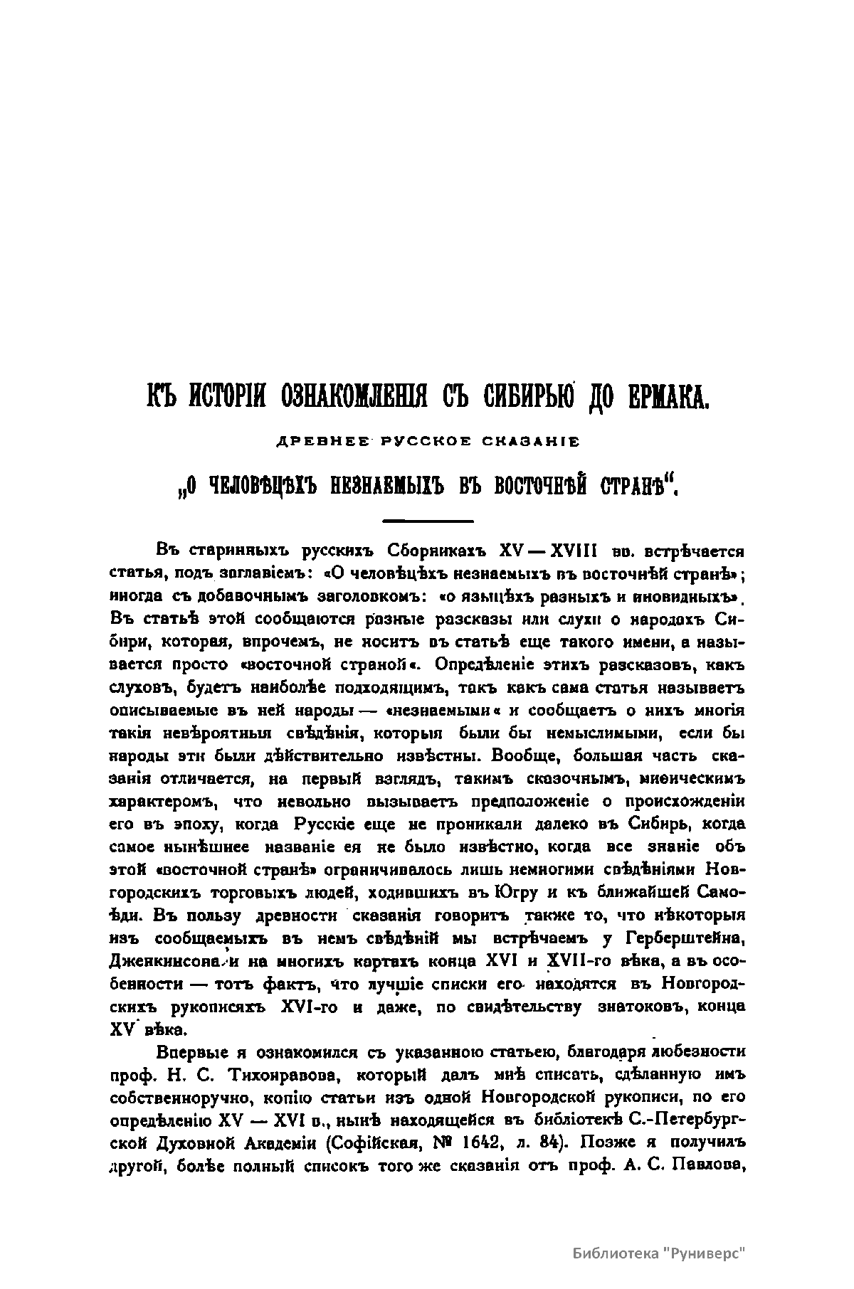 Къ исторiи ознакомленiя съ Сибирью до Ермака