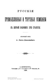 Русскiя промышленныя и торговыя компанiи въ первой половинѣ XVIII столѣтiя