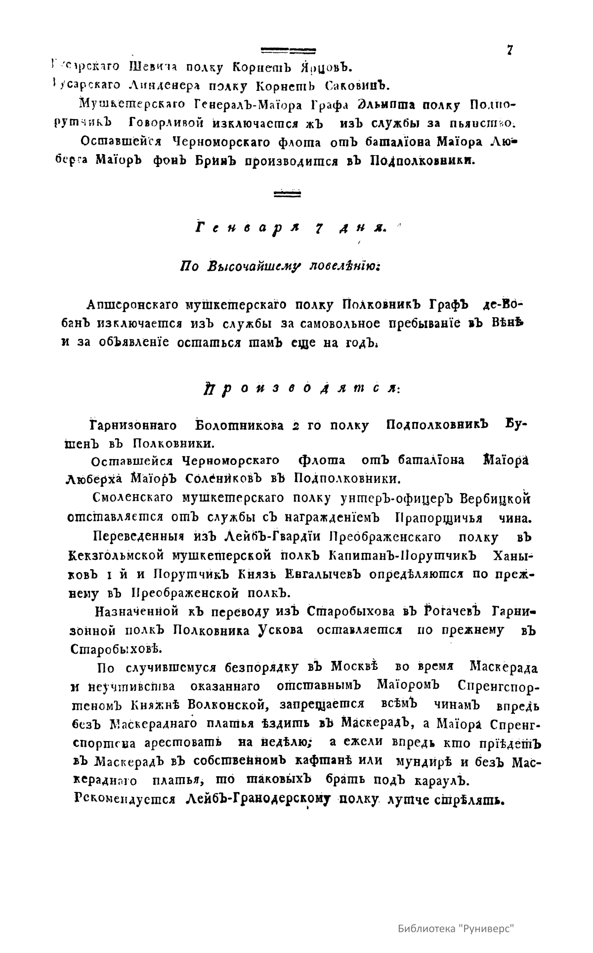 Всевысочайшие приказы, отданные в присутствии Его Императорского Величества Государя Императора, со вступления его на Всероссийкий престол. 1798