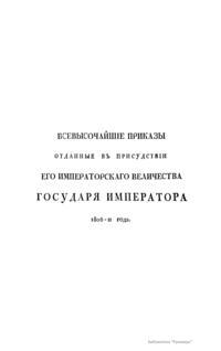 Всевысочайшие приказы, отданные в присутствии Его Императорского Величества Государя Императора, со вступления его на Всероссийкий престол. 1806/2