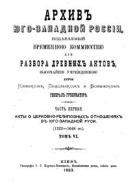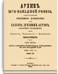 В серии «Архив Юго-Западной России» были напечатаны документы Киевского архива. Издание было предпринято Киевской археографической комиссией с 1859 по 1911 год. Всего вышло 34 тома.