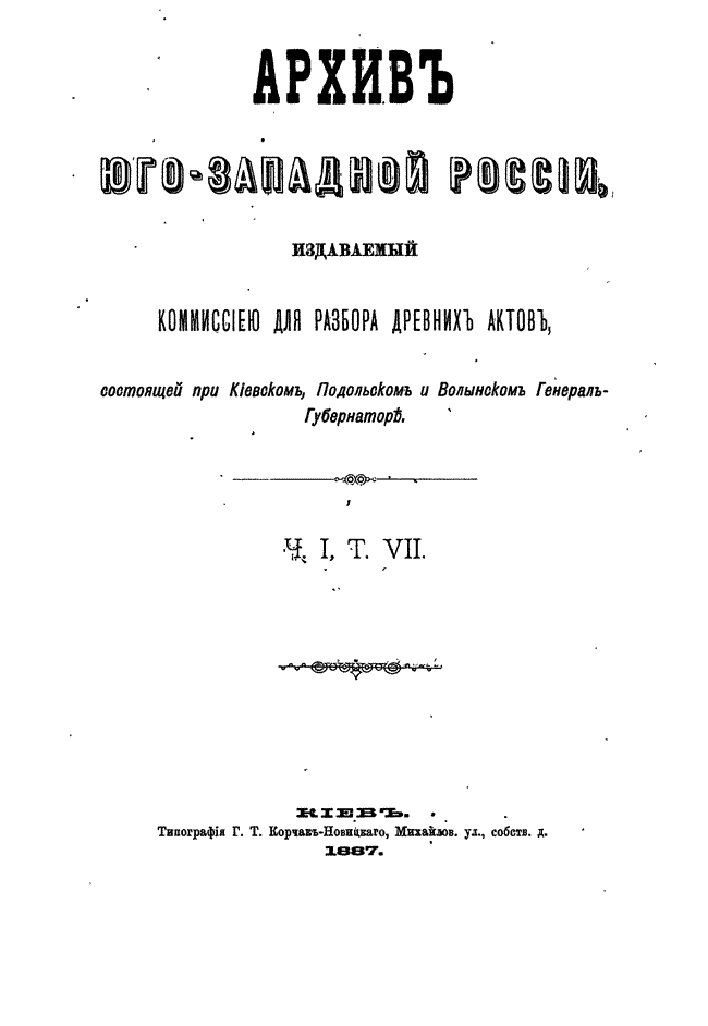 Архив Юго-Западной России. Часть 1. Том VII.