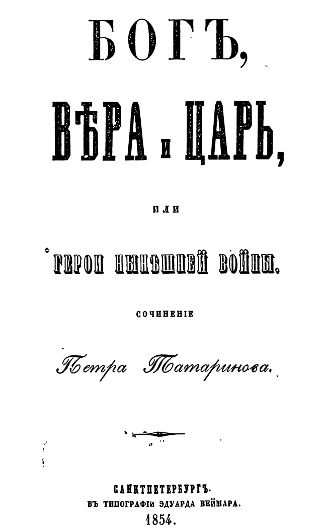 Издание содержит сочинения Петра Татаринова, посвященные Крымской войне (1853-1856). В них содержатся рассуждения о славе и величии России, описания битв, прославление подвигов русской армии, анекдоты, письма с мест военных действий.
