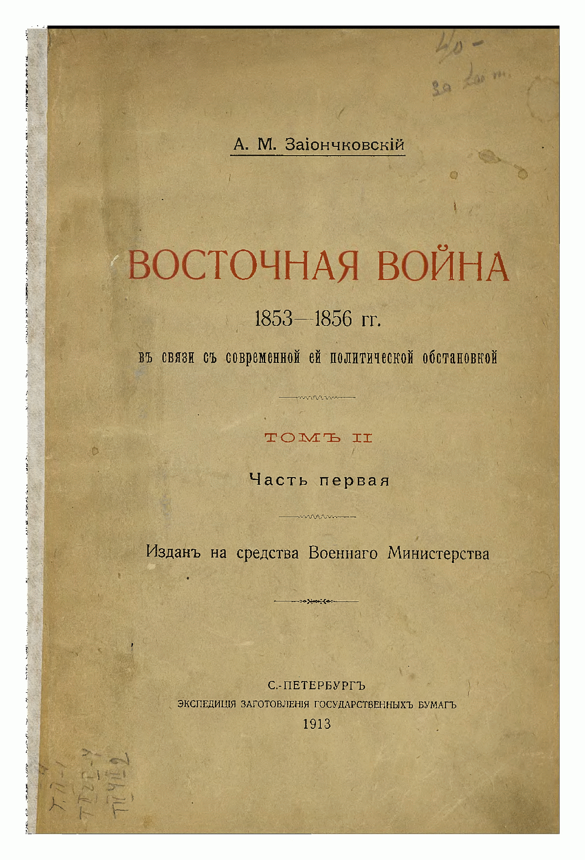 Восточная война 1853—1856 гг. Том II. Часть 1.