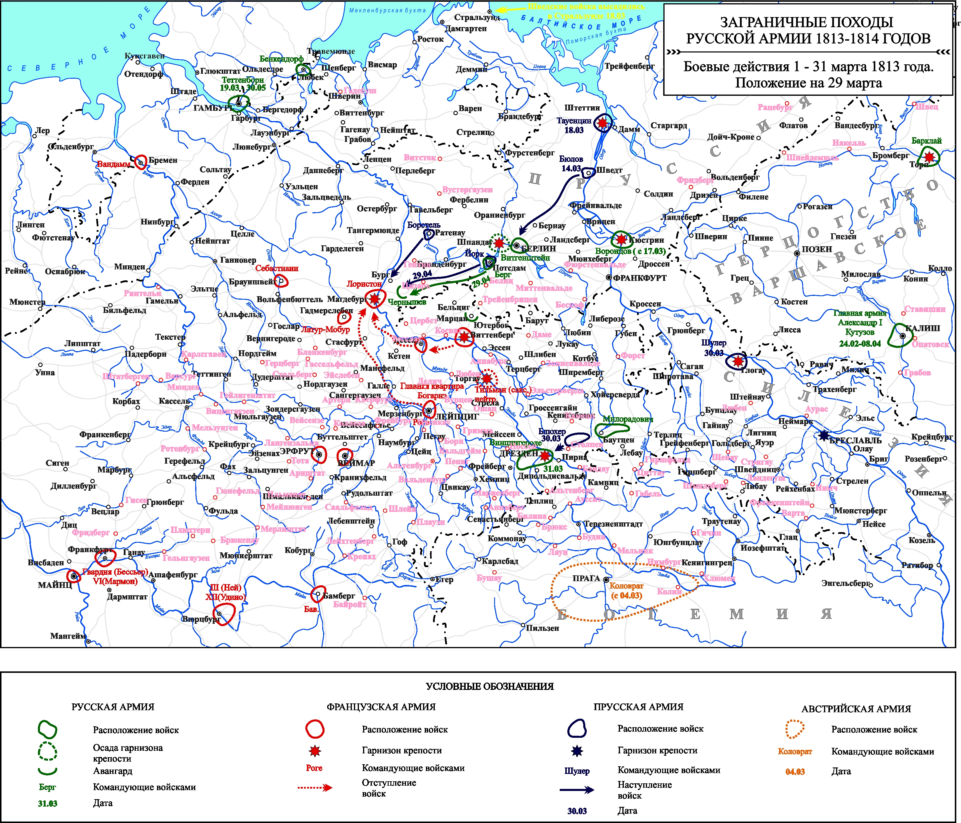 Заграничные походы Русской армии 1813-1814 гг. Положение на 29 марта 1813 г.